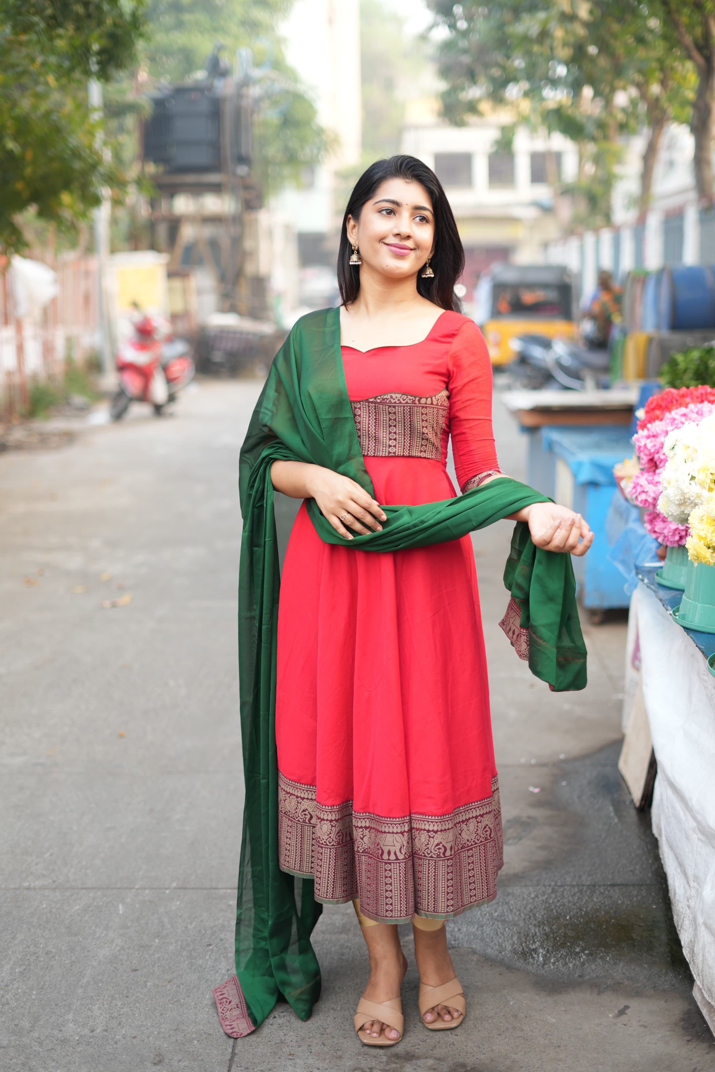 Complete the look with traditional jewelry and a pair of juttis or kolhapuris for that effortless ethnic charm! 💫