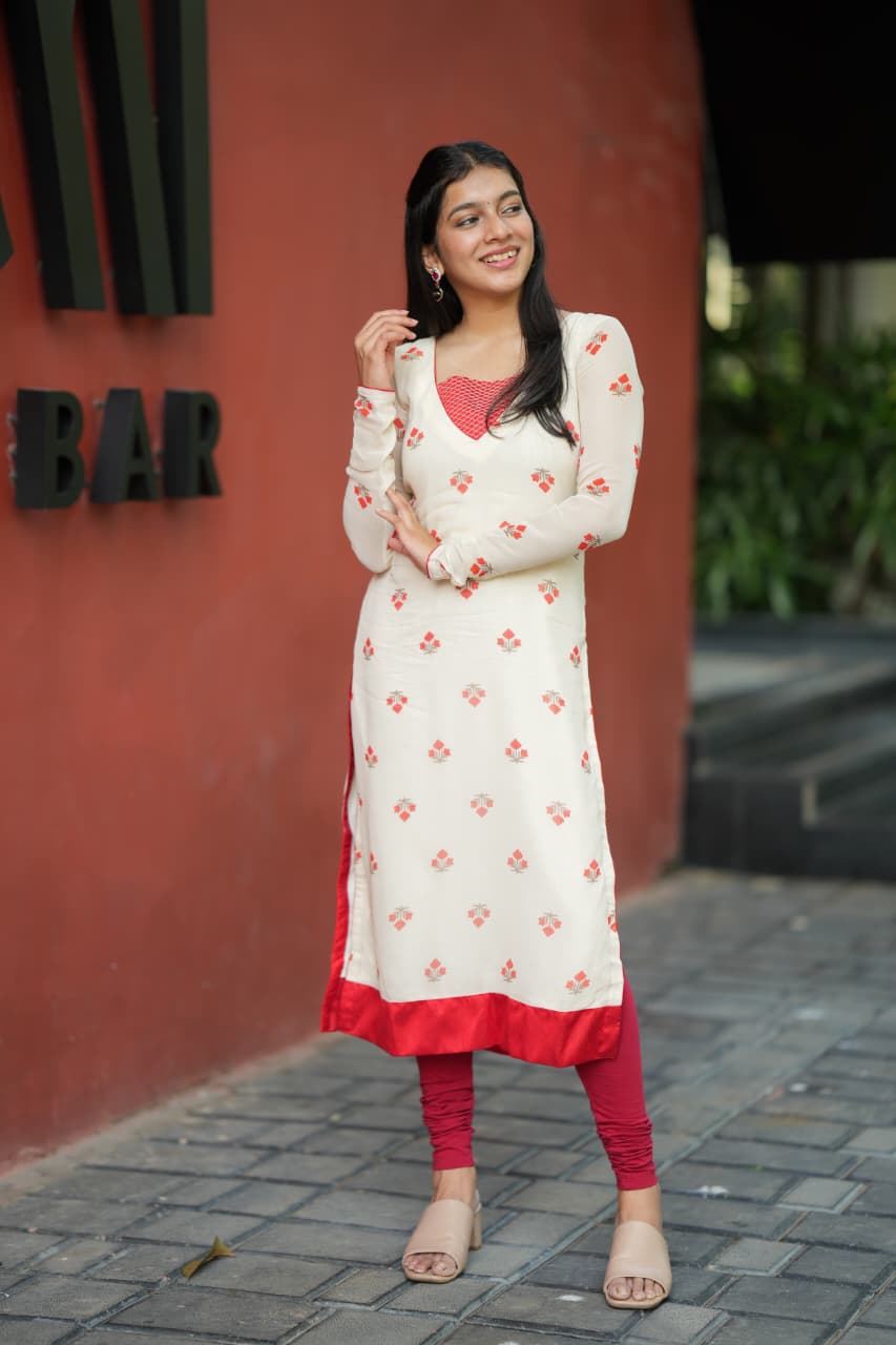 The Mira Collection is a beautiful expression of simplicity and charm, crafted from soft-flowing georgette fabric that offers a lightweight feel and elegant drape. The subtle floral motifs paired with a contrasting neckline detail add a refreshing touch, making it a perfect choice for effortless everyday elegance.