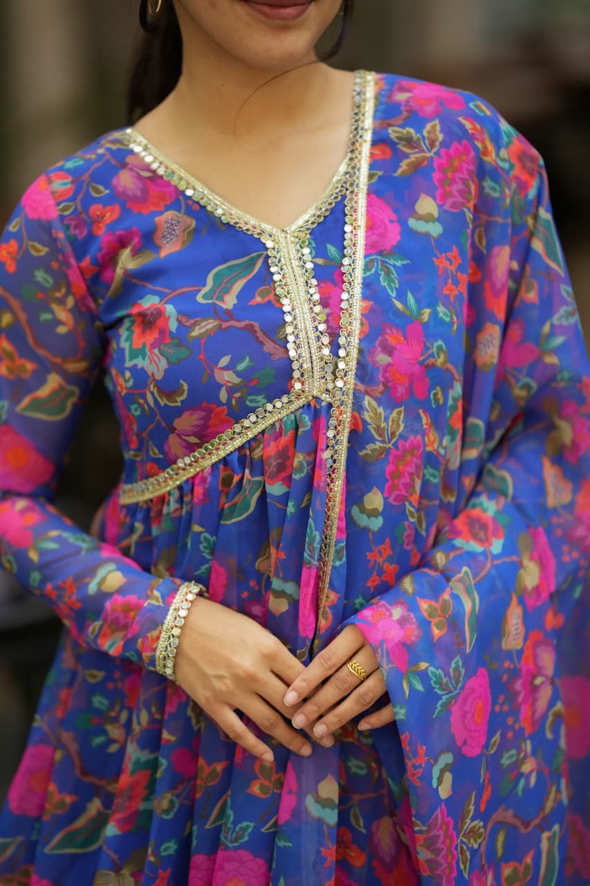 Alia Series (DD927) – Elegant Georgette Floral Ethnic Set