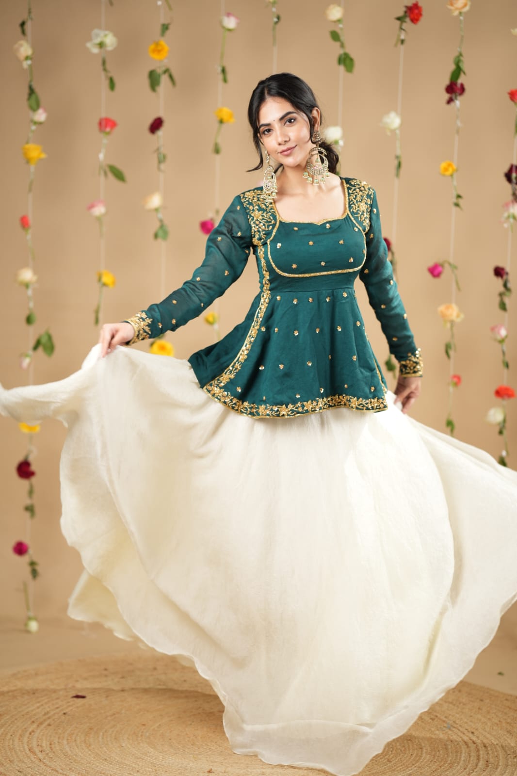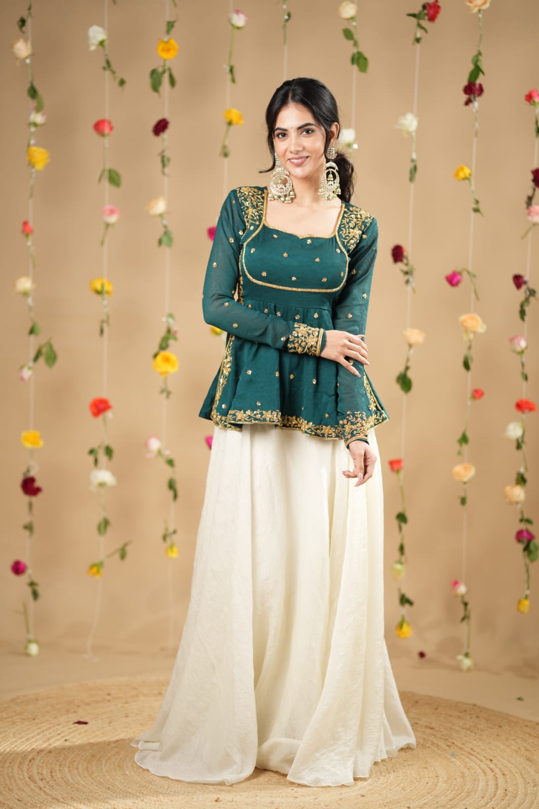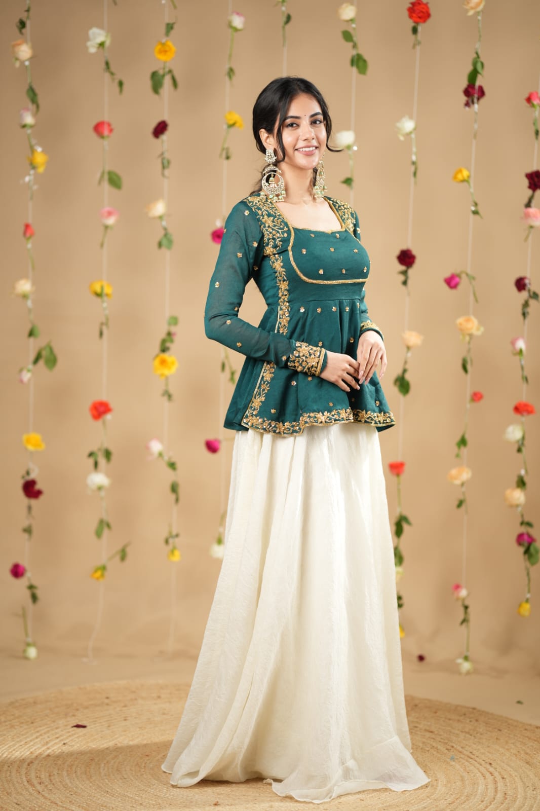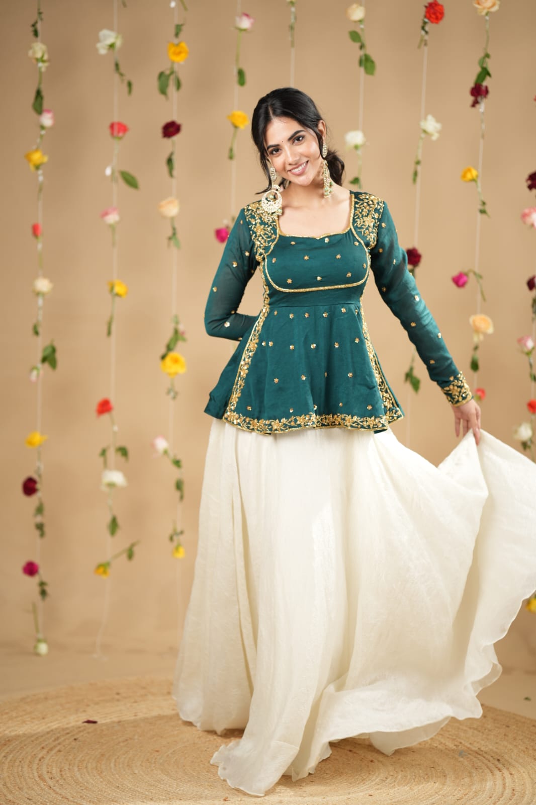 Fabric: Glosy Georgette Top with Intricate Handwork & Crush Tissue Skirt