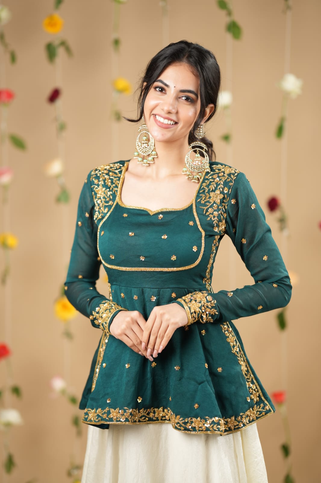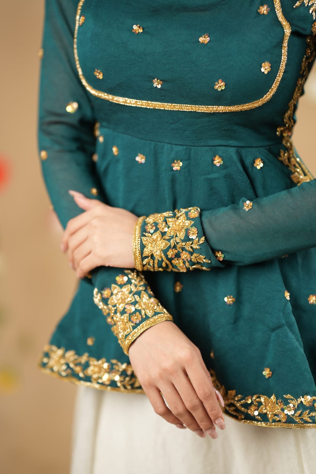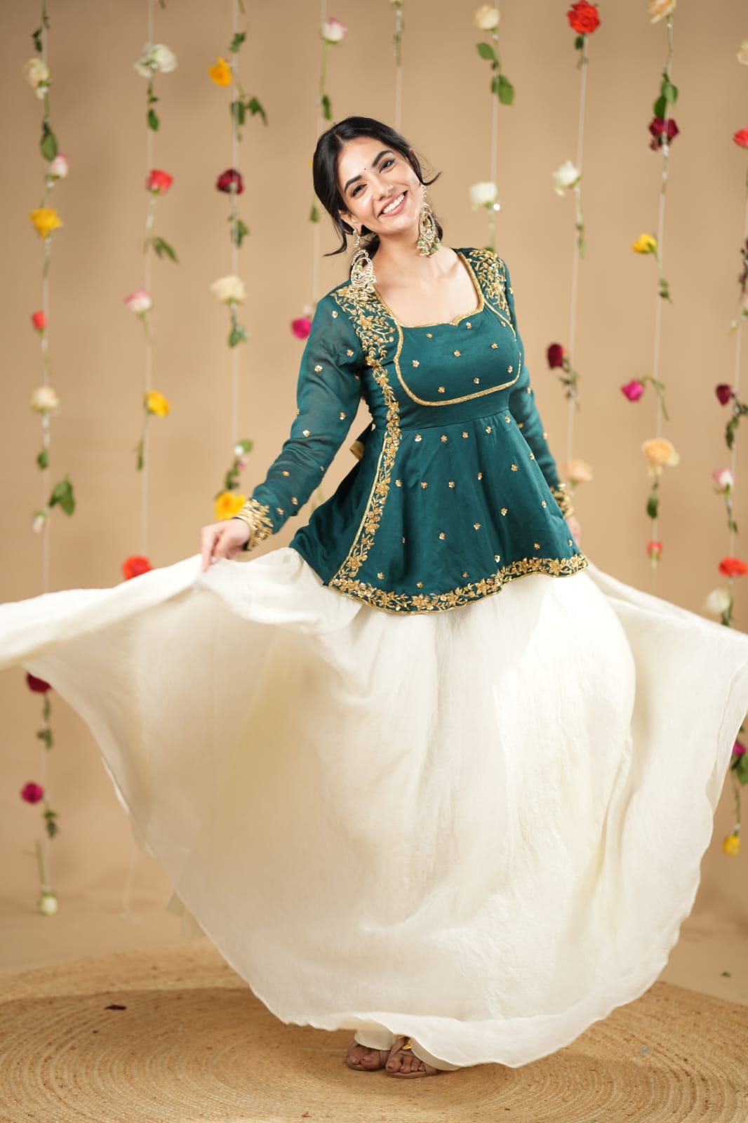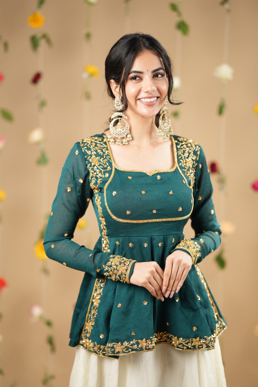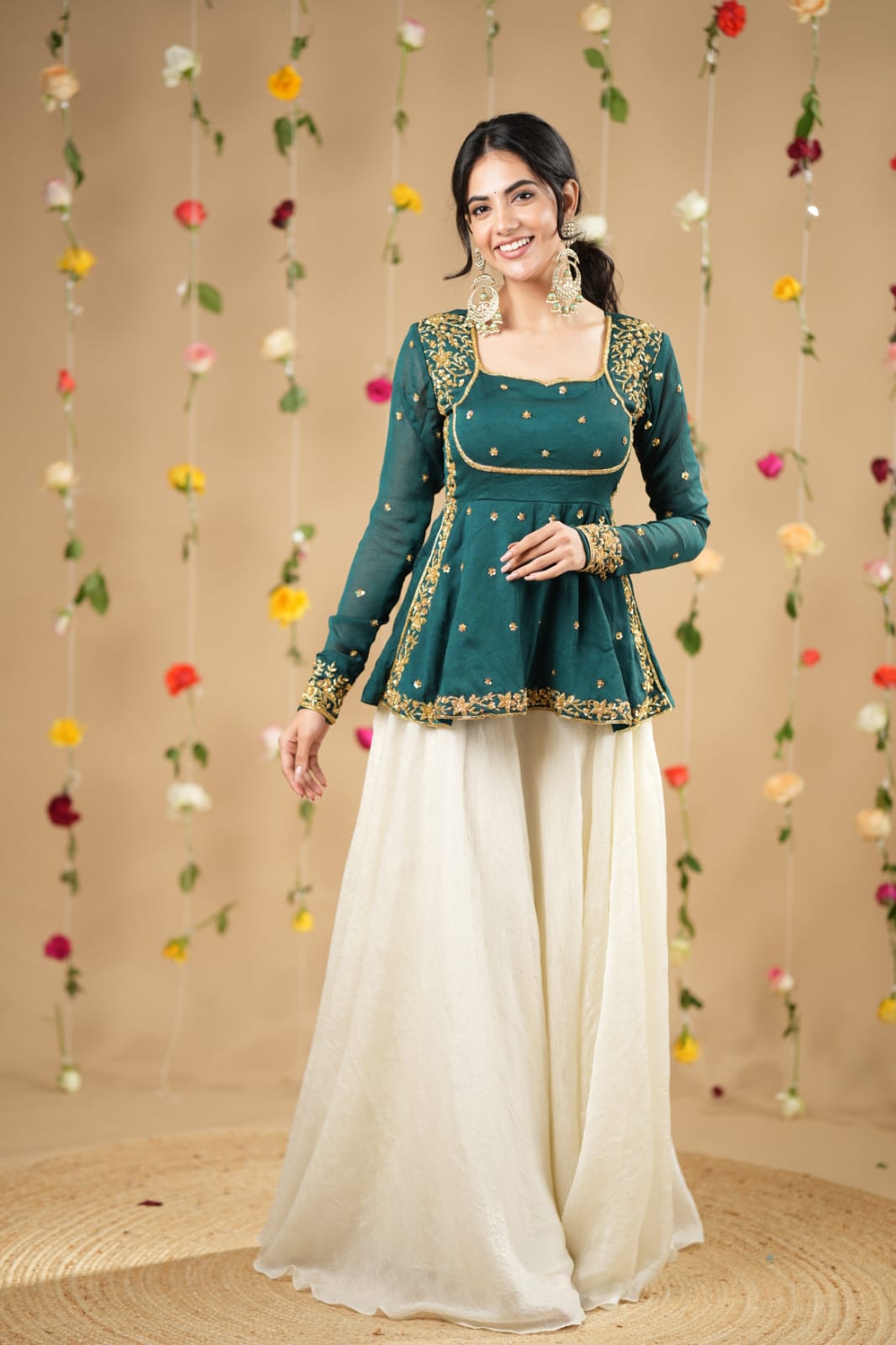 Fabric: Glosy Georgette Top with Intricate Handwork & Crush Tissue Skirt