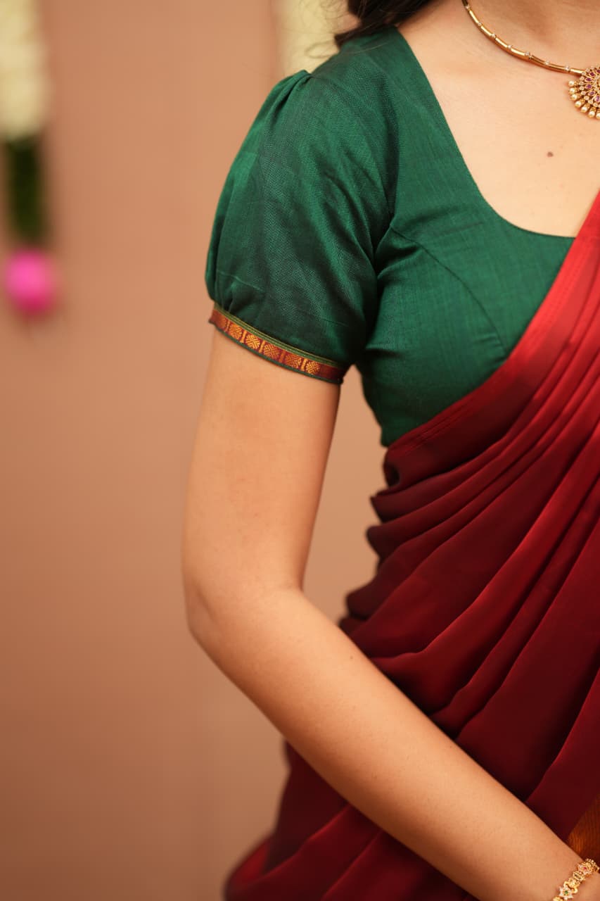 Charming cotton blouse with subtle traditional detailing, designed for comfort and grace. The short sleeves and fine finishing give it a timeless ethnic appeal.