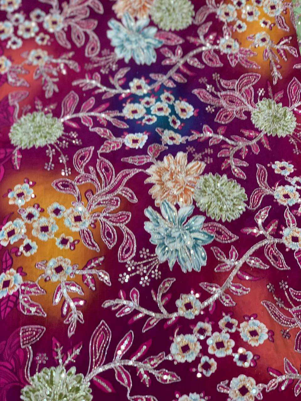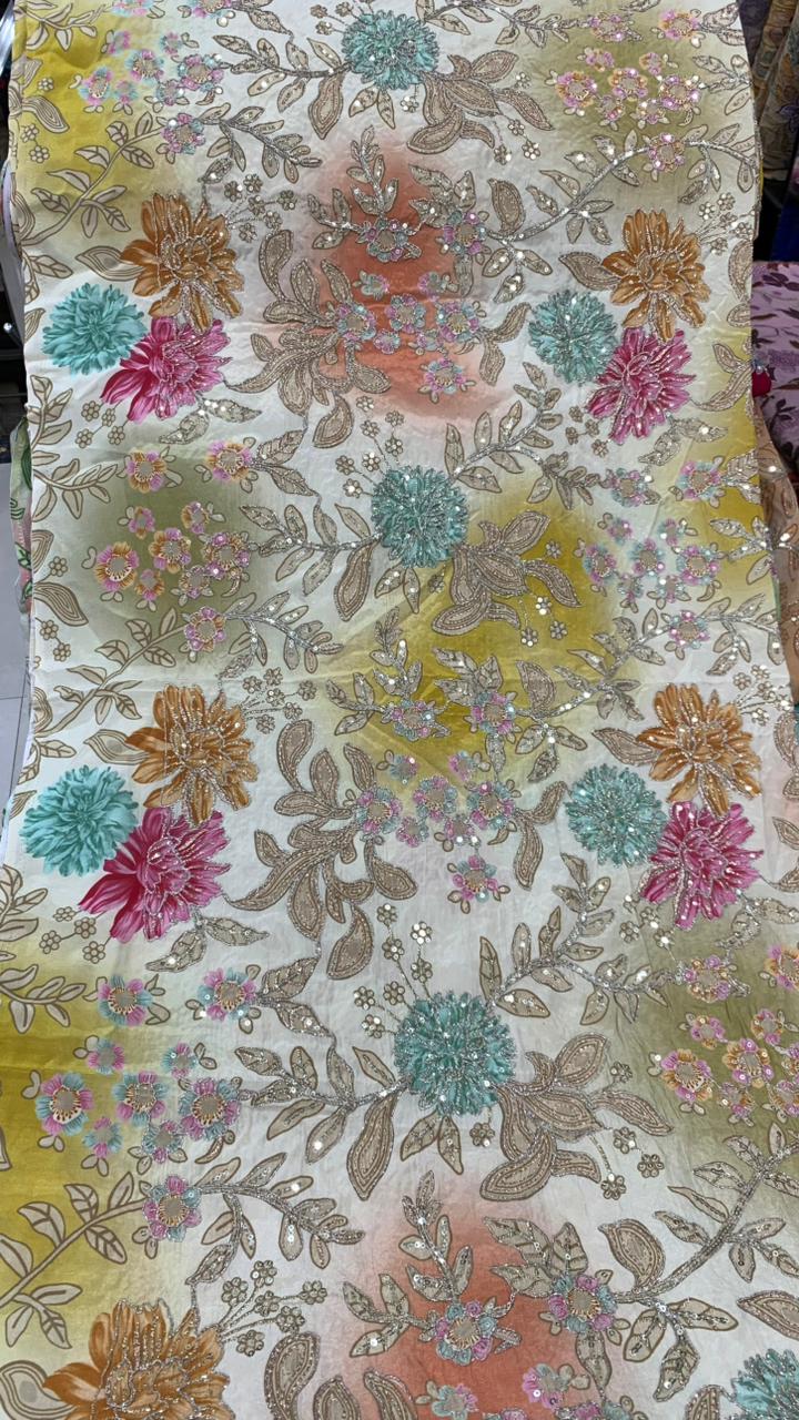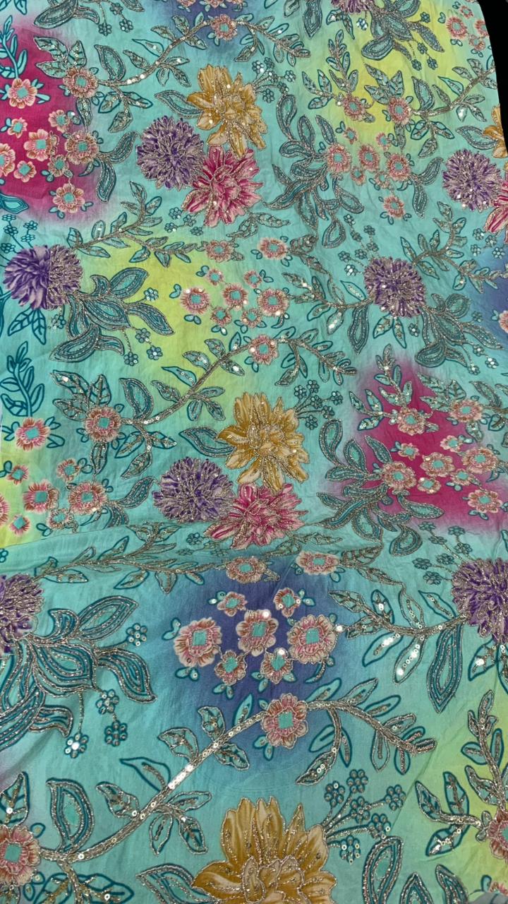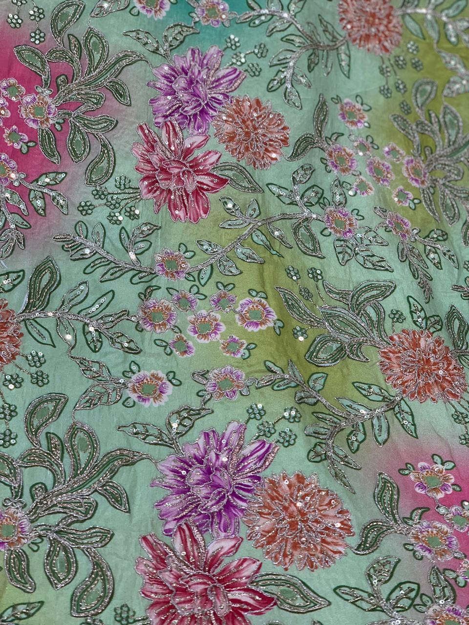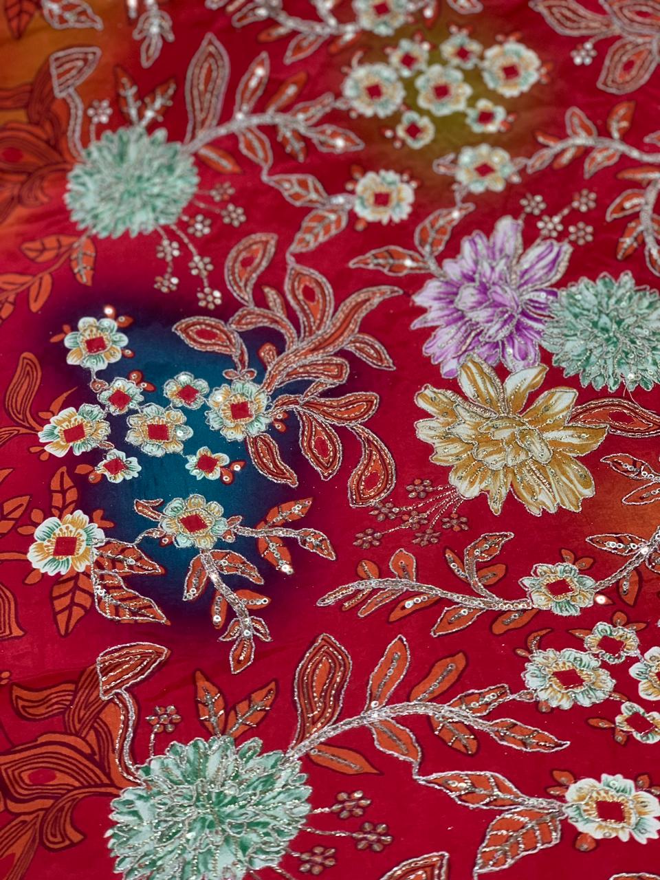Blouse: Crafted from rich sequin fabric, the blouse features elegant handwork that adds a soft, festive shimmer. The beautifully designed neckline and refined detailing enhance your silhouette with a perfect blend of tradition and modern grace.
