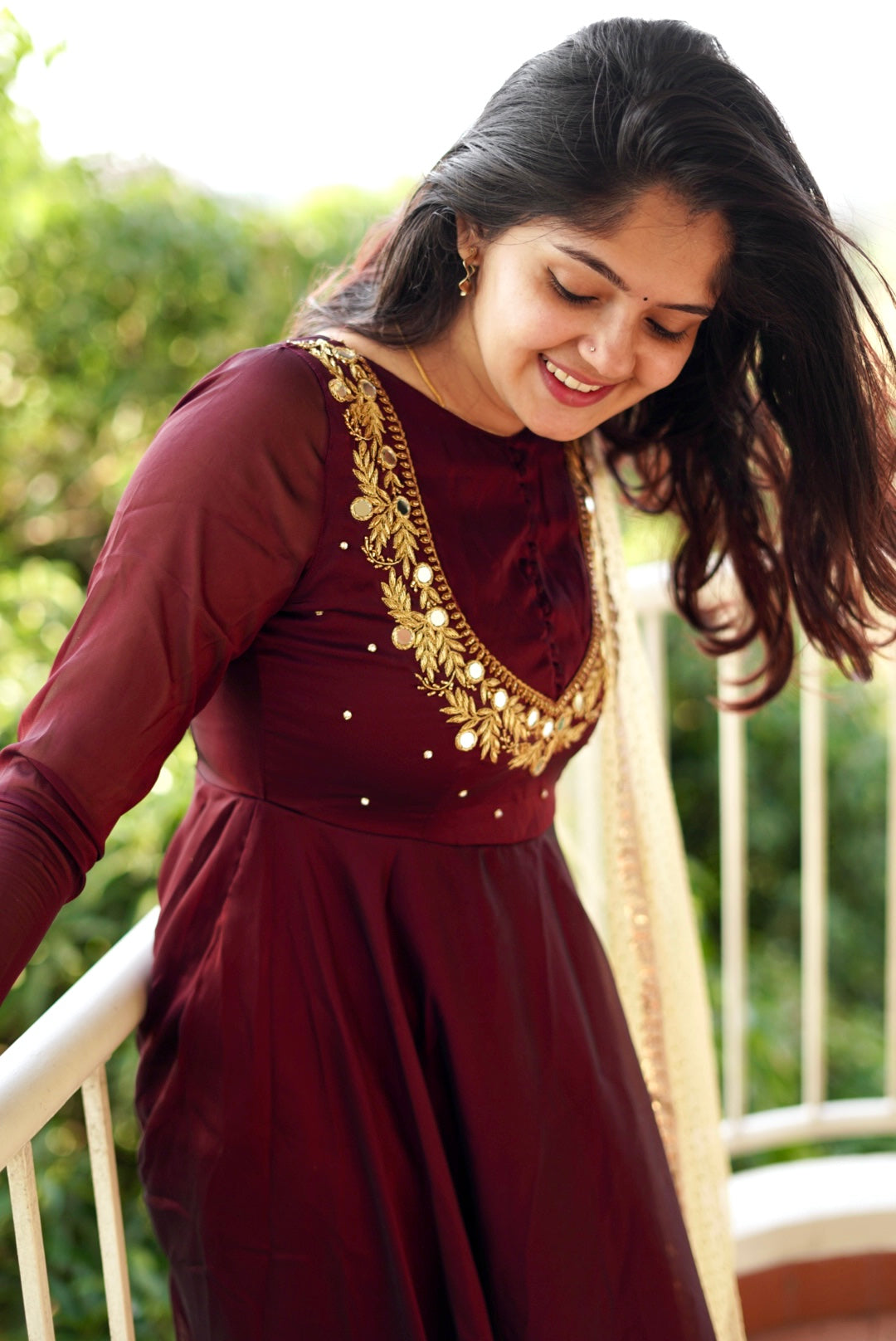 - Customised this anarkali with Real mirrors and zardosi thread work.