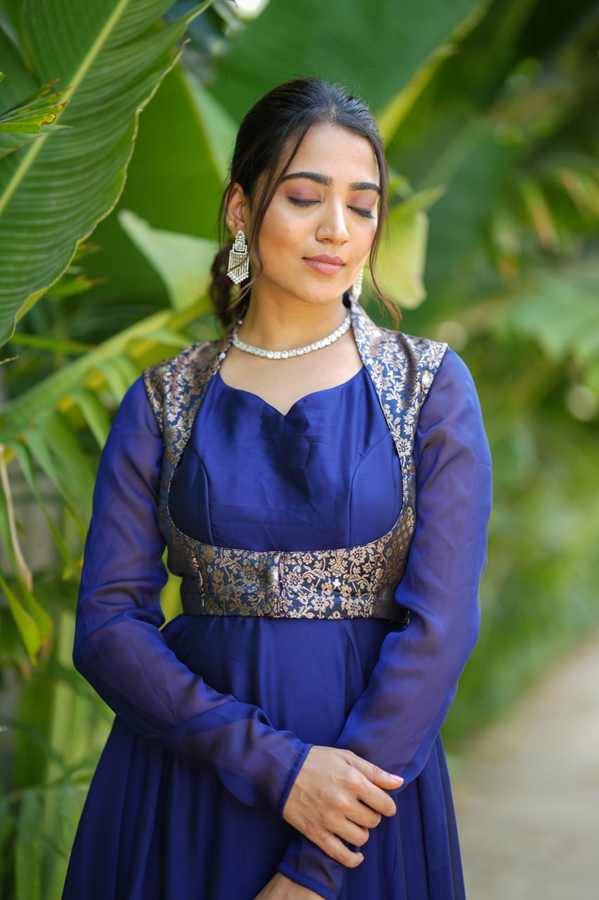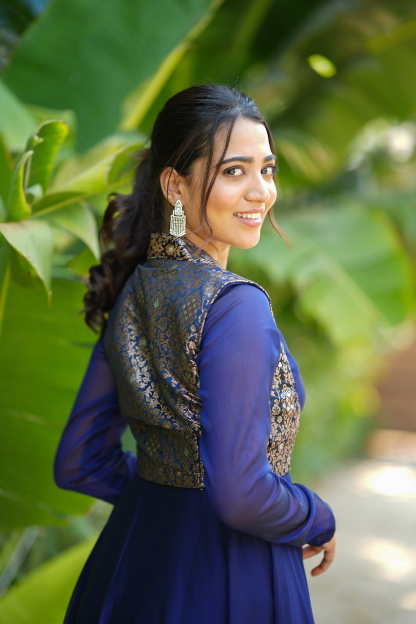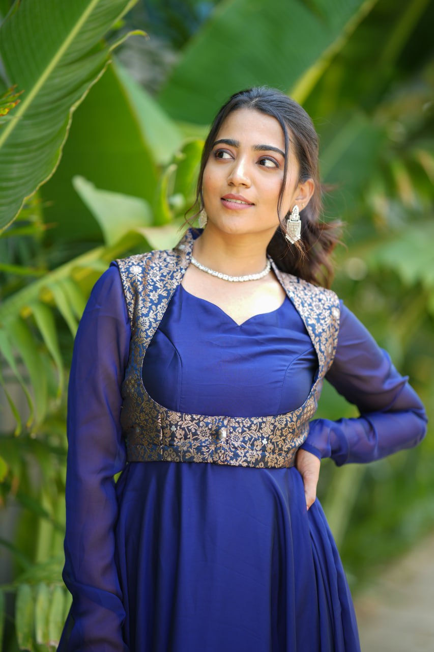 The versatile two-in-one dress can be worn with or without the banaras coat, making it perfect for festive occasions, wedding functions
