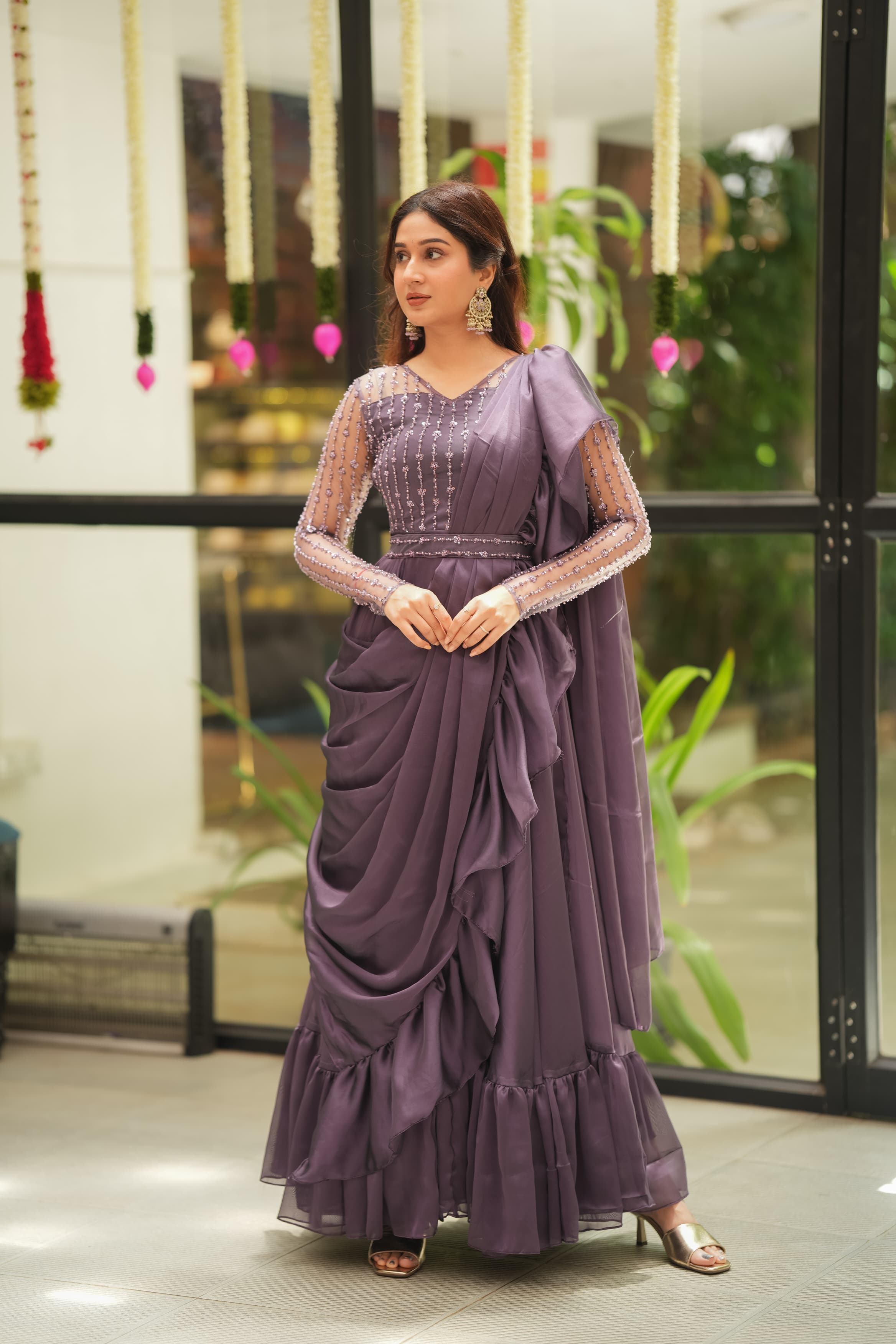 Ruffled Drape: The dress features a stunning ruffled drape that cascades gracefully, adding movement and flair to your look.
