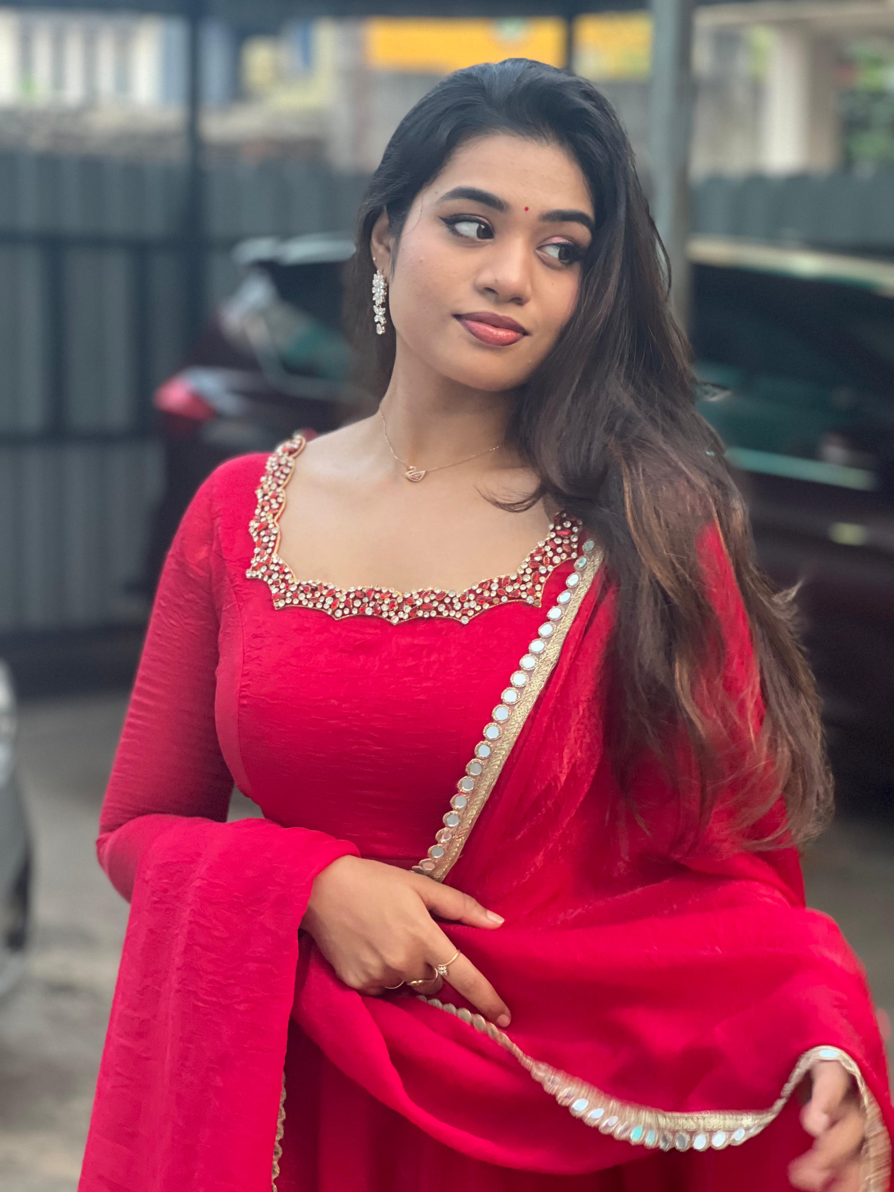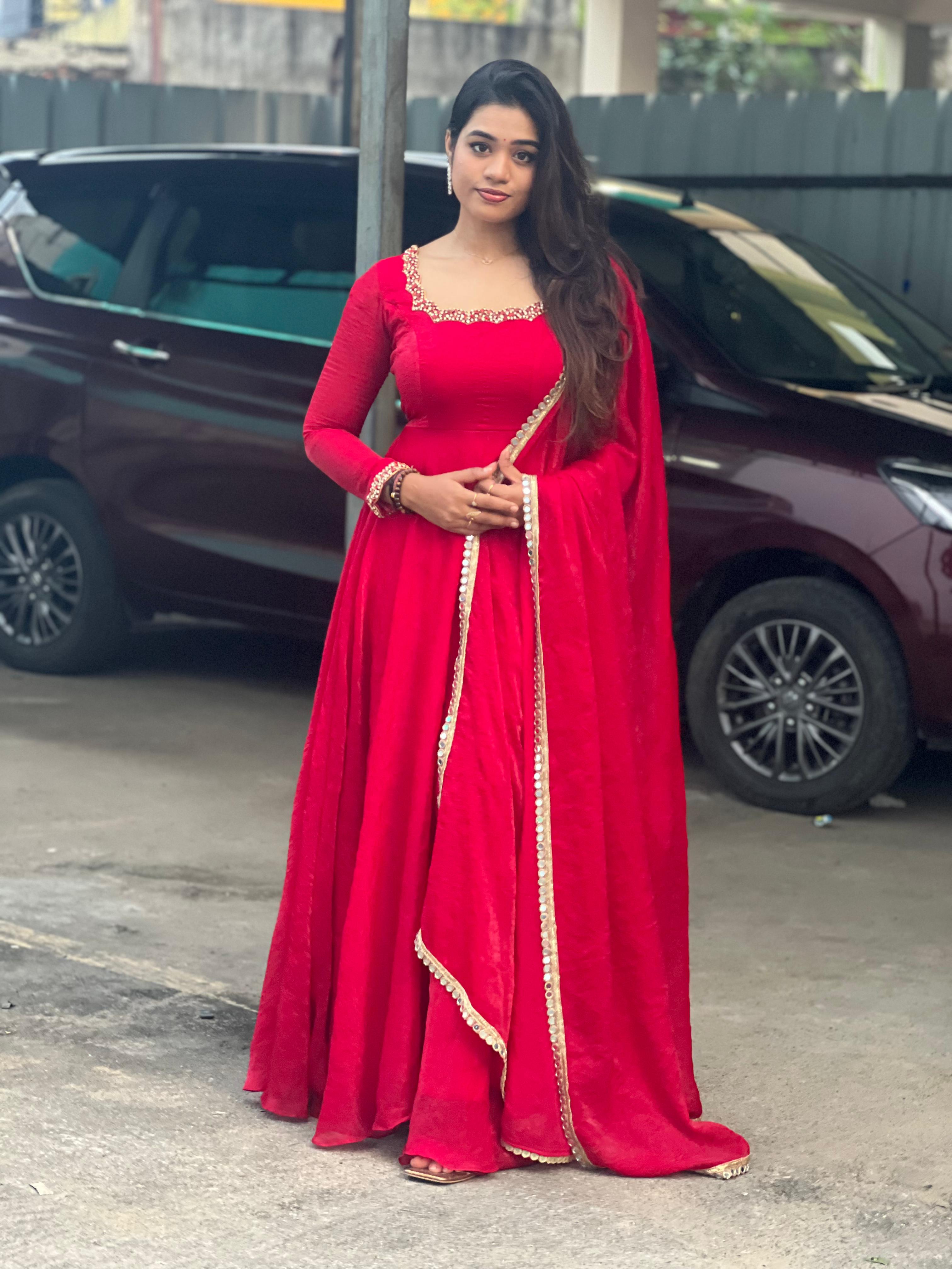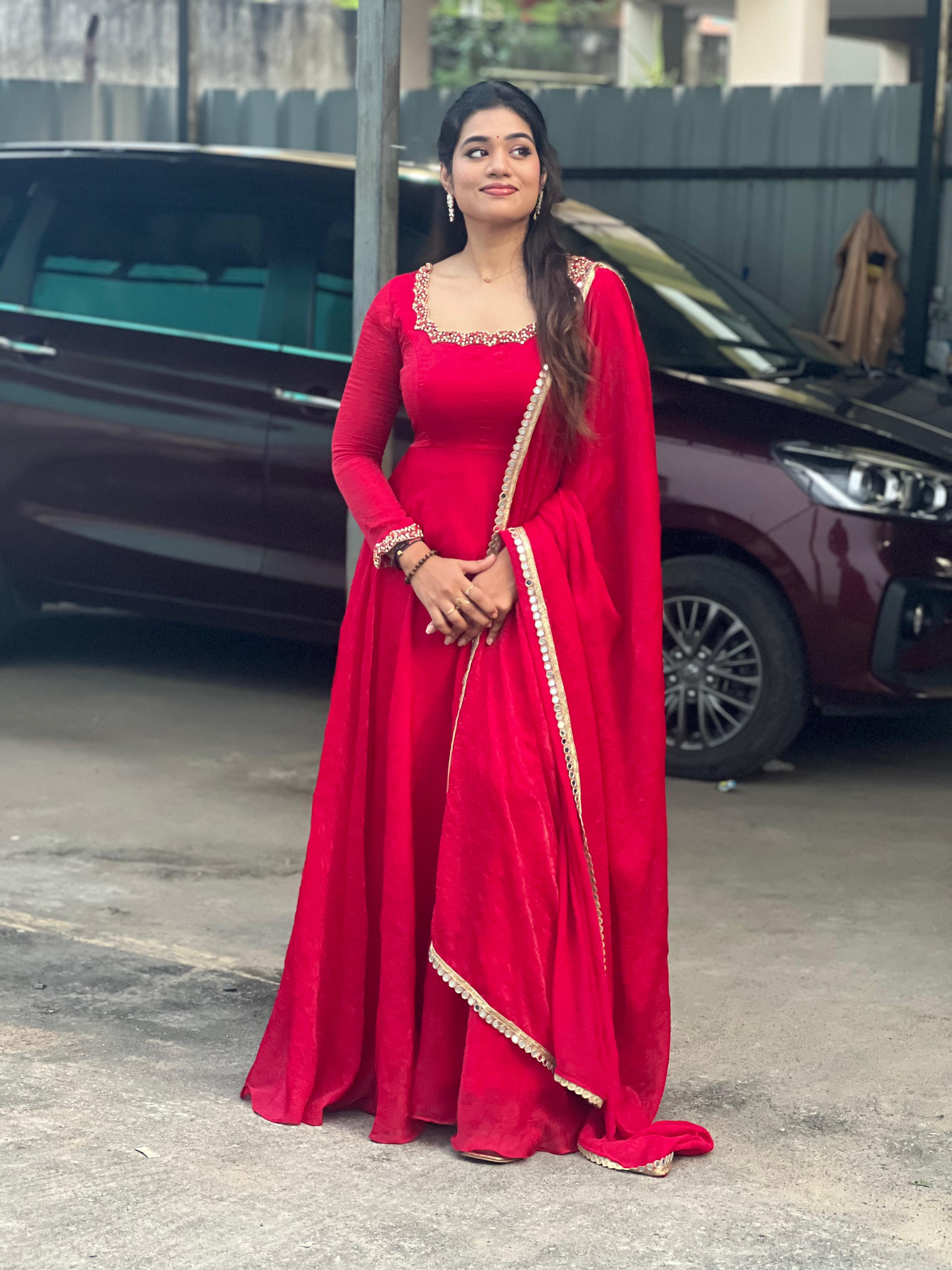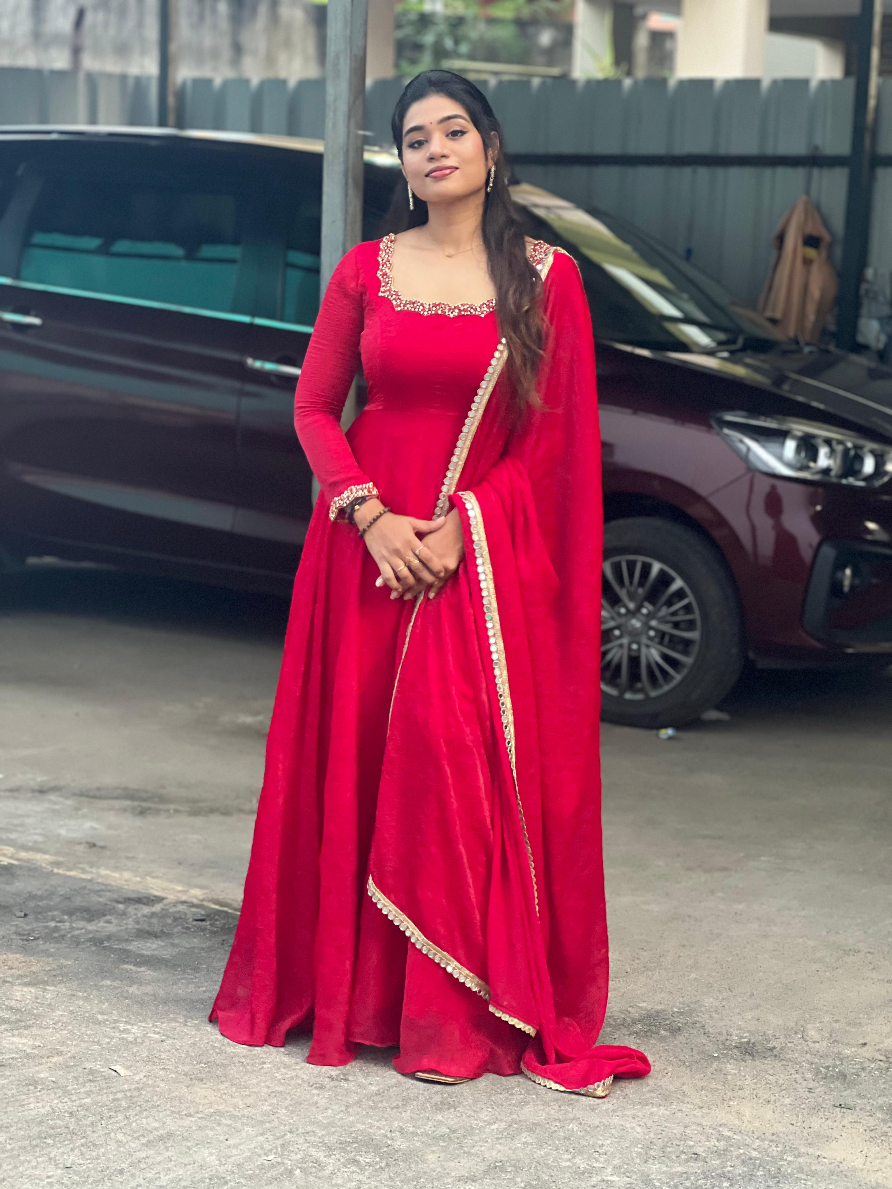 Unveiling the breathtaking Jessy Collection, crafted from luxurious crush tissue silk adorned with intricate handwork. This vibrant red dress adds an elegant charm to your festive moments, making you shine effortlessly.