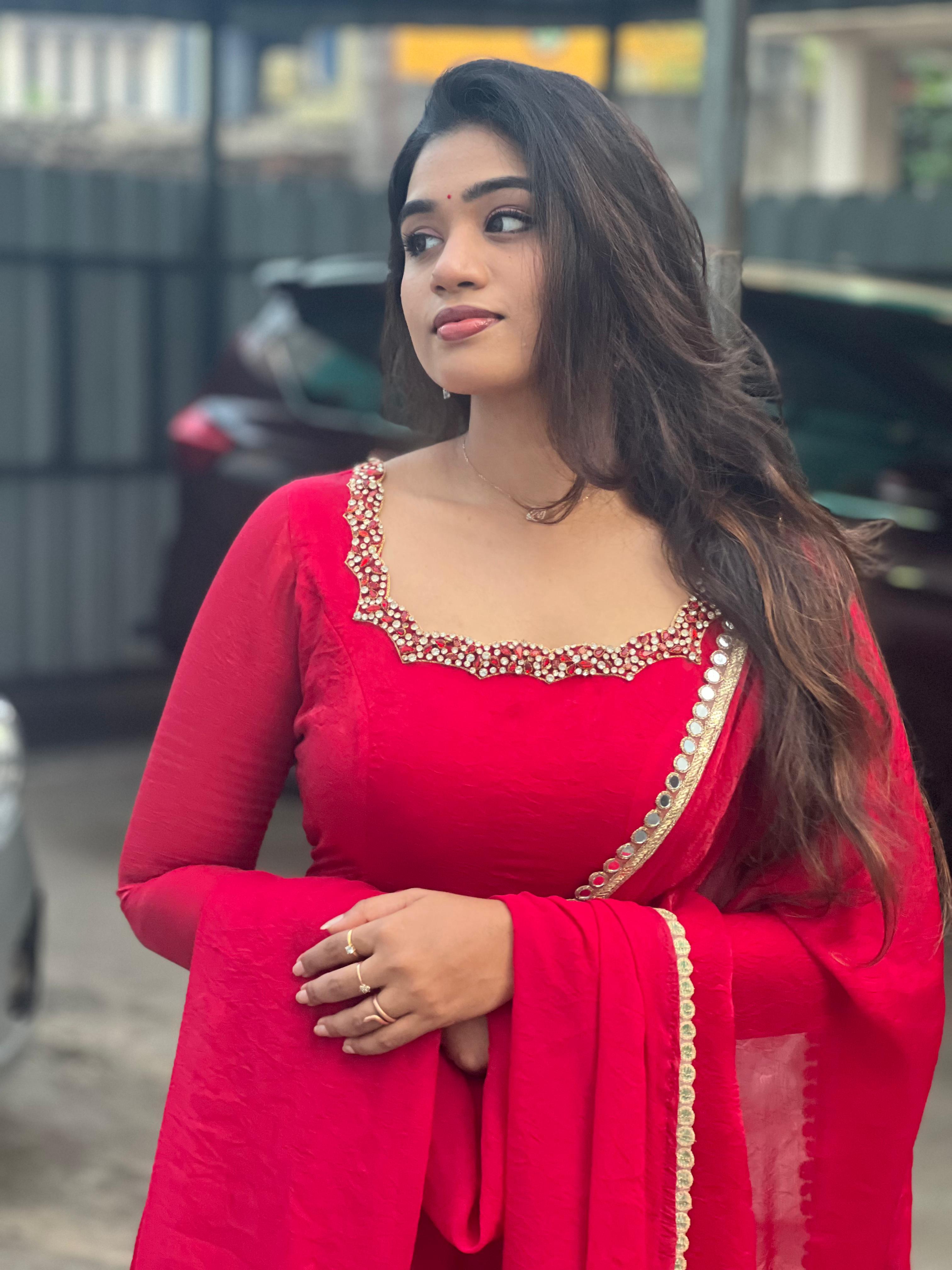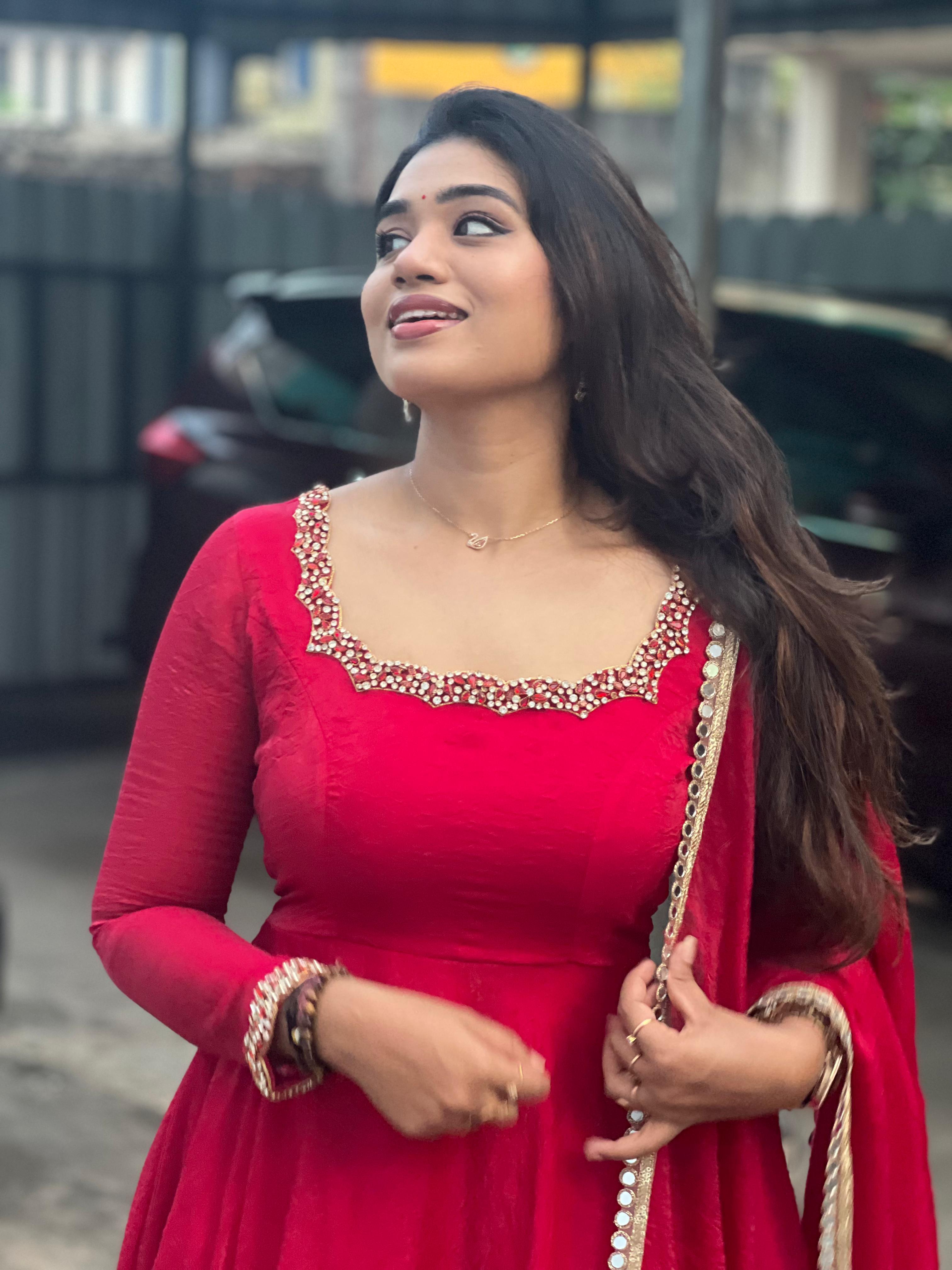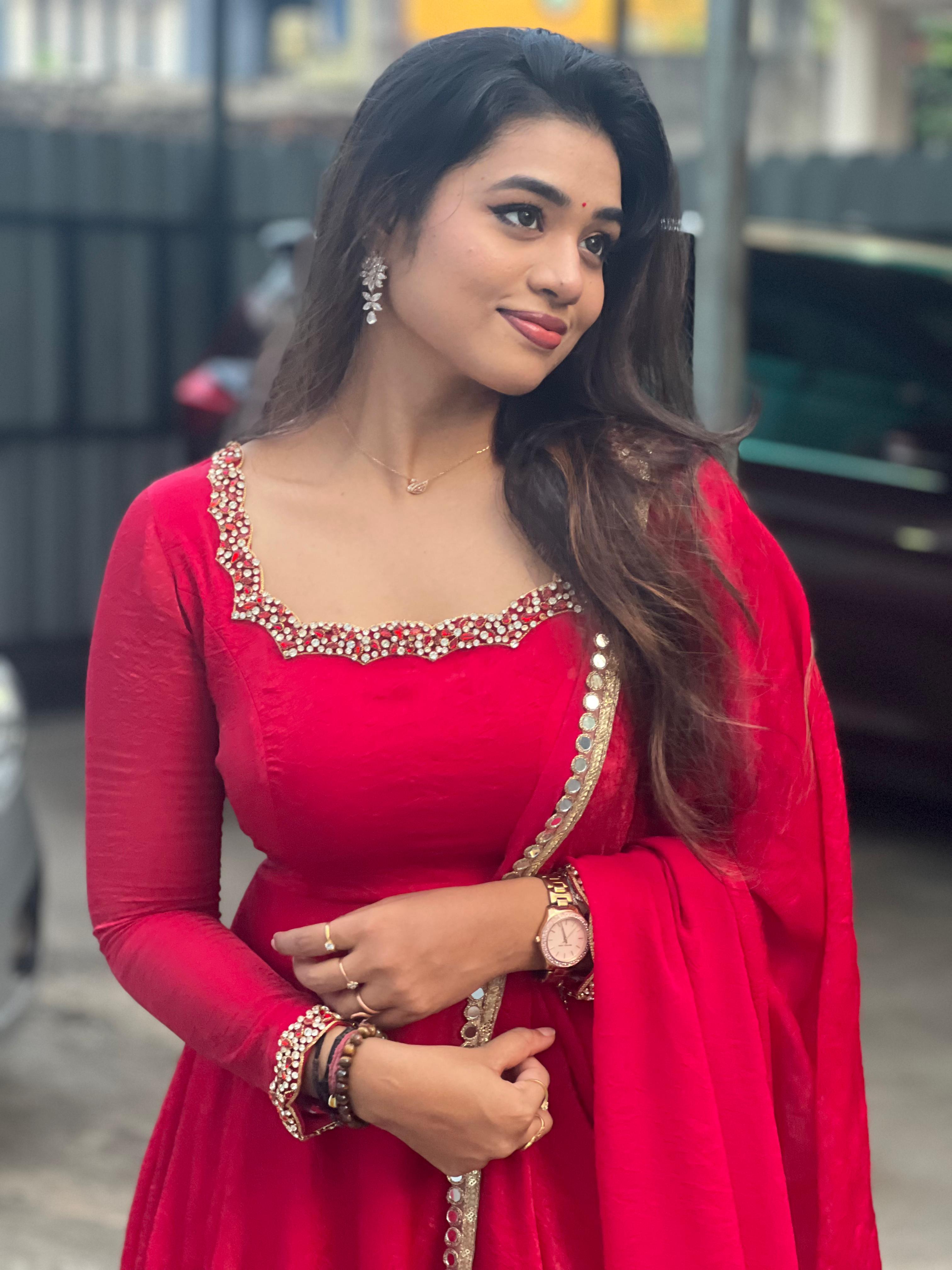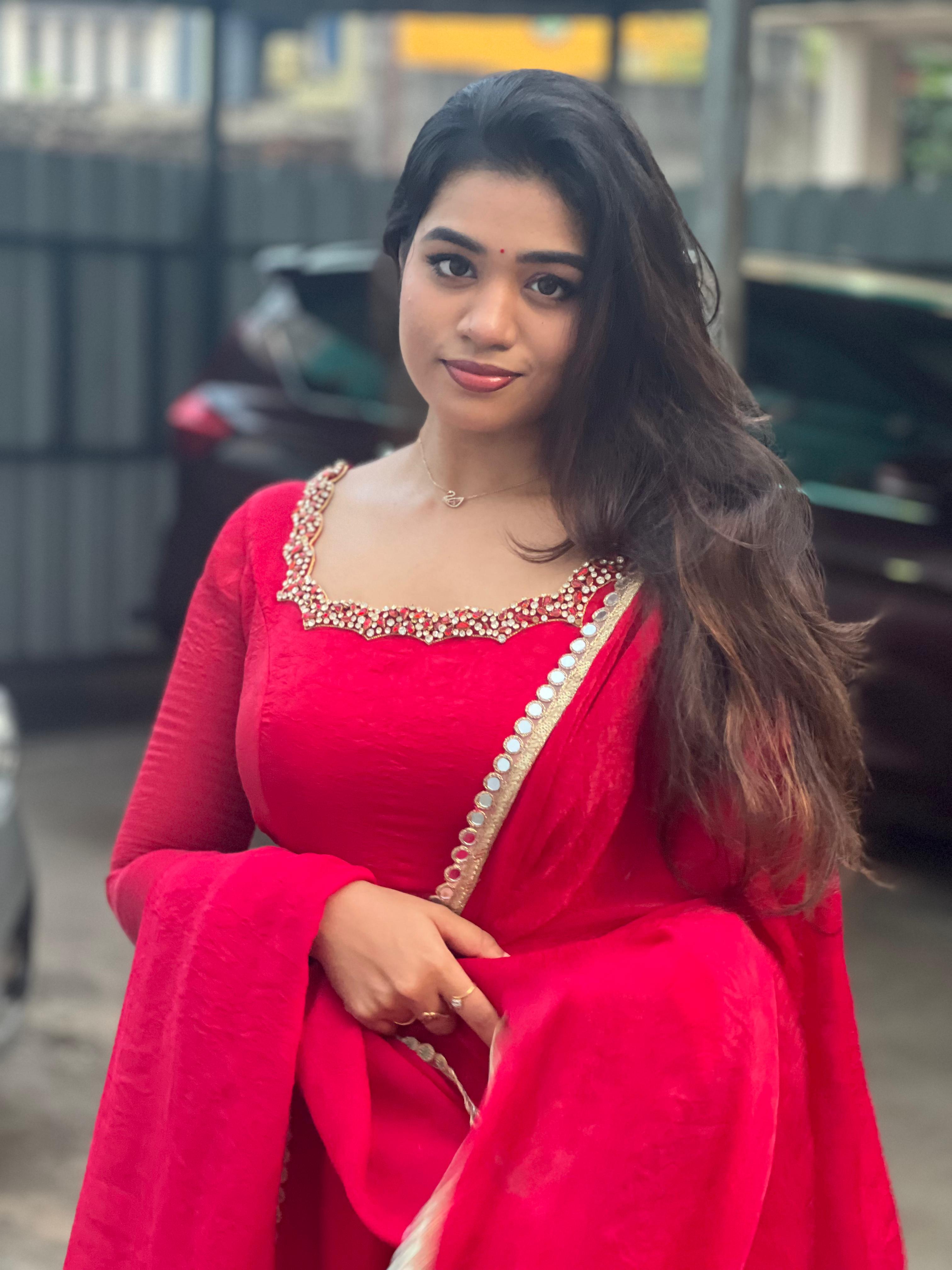 Unveiling the breathtaking Jessy Collection, crafted from luxurious crush tissue silk adorned with intricate handwork. This vibrant red dress adds an elegant charm to your festive moments, making you shine effortlessly.