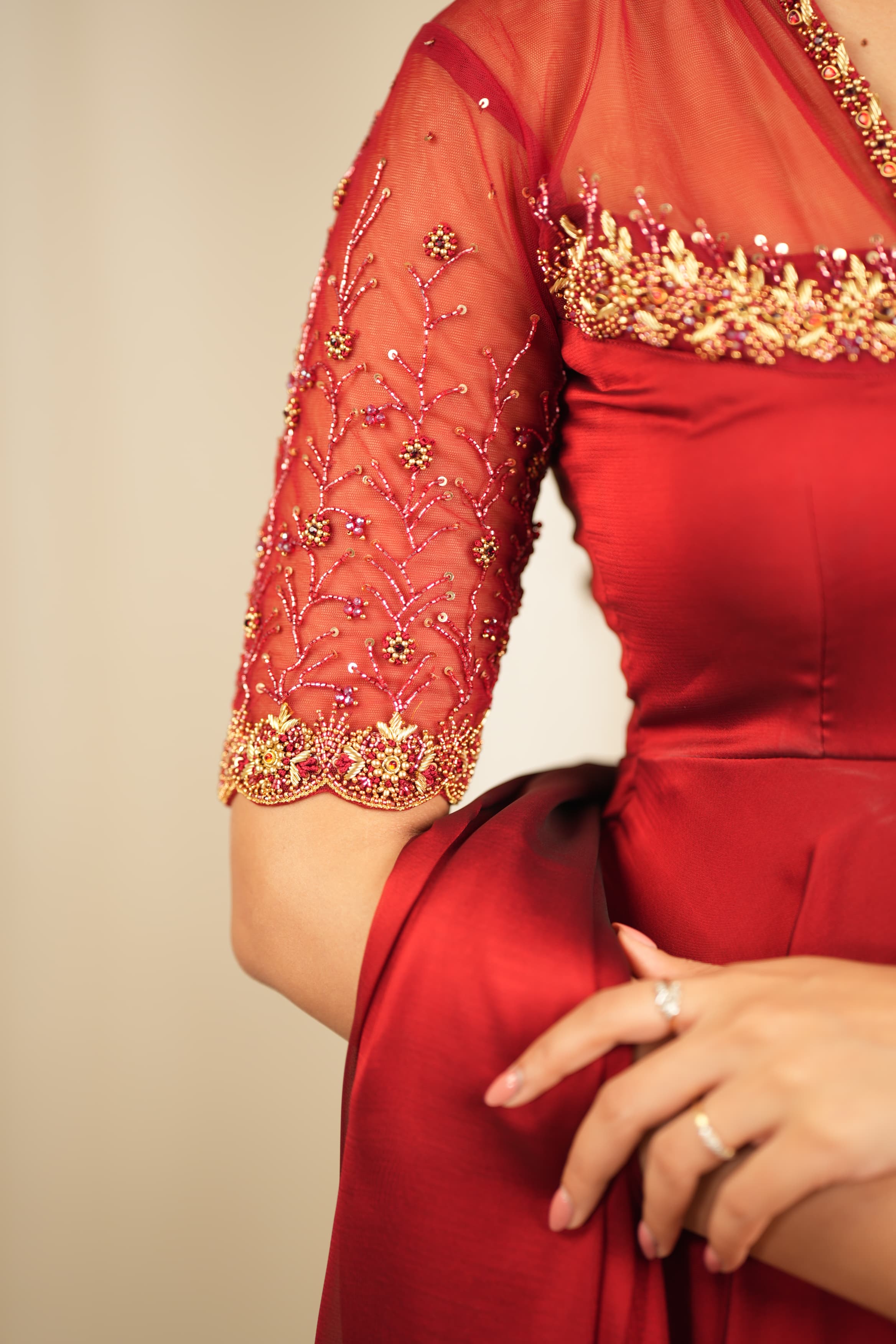 StyleTip: Elevate your look by pairing it with bold statement earrings, a sleek bracelet, and a matching clutch. A braided hairstyle or soft curls will complement this elegant attire perfectly!