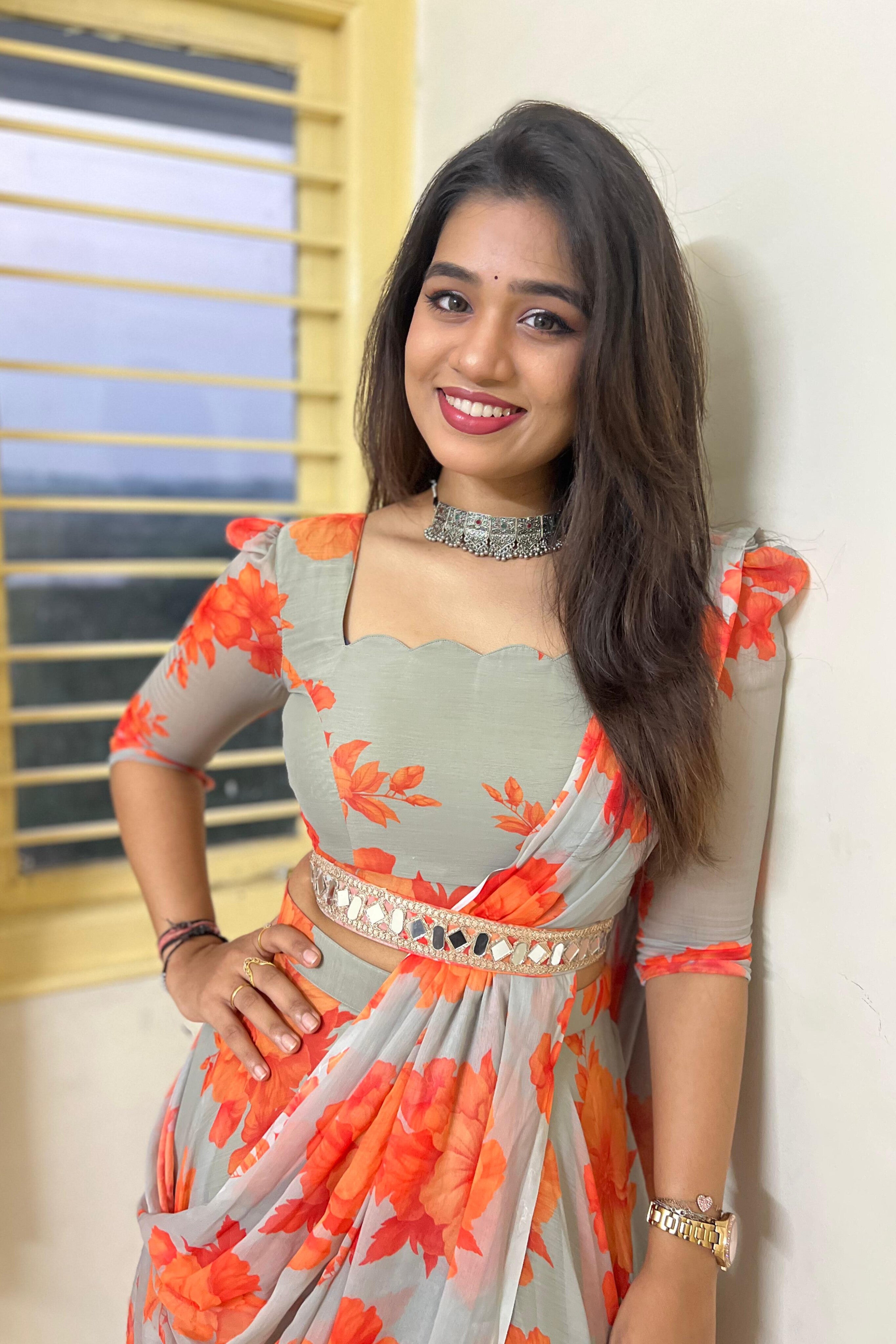 A perfect pick for weddings, receptions, and festive gatherings, this stunning floral georgette drape will make you the center of attention.