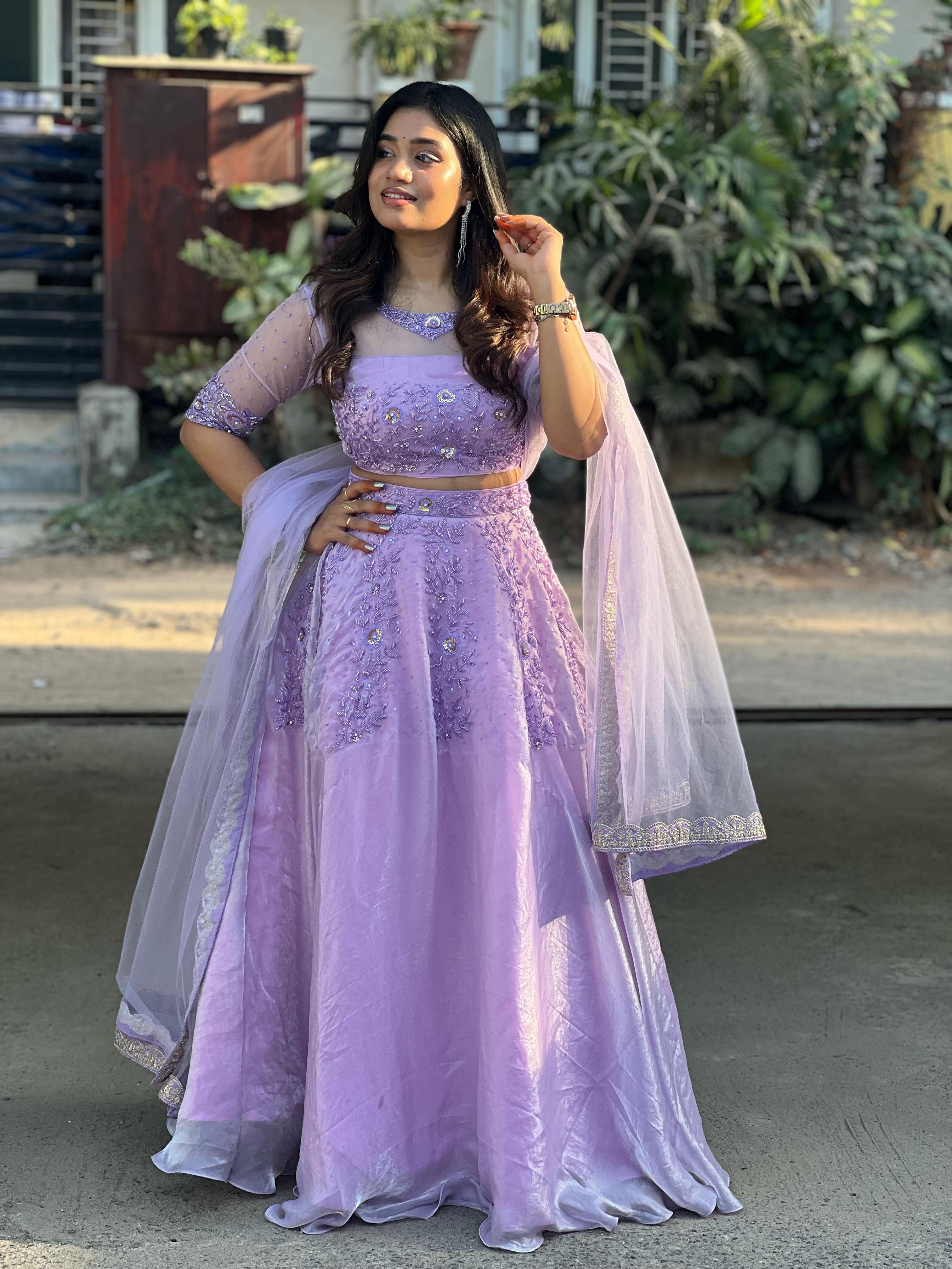 Step into elegance with our Agasthiya Collection, a masterpiece crafted for those who love sophistication and tradition. Made from luxurious space silk, this outfit is adorned with intricate aari work, adding a touch of regal charm. The beautifully designed blouse with an elegant neck pattern perfectly complements the flowy silk skirt, creating a mesmerizing silhouette.