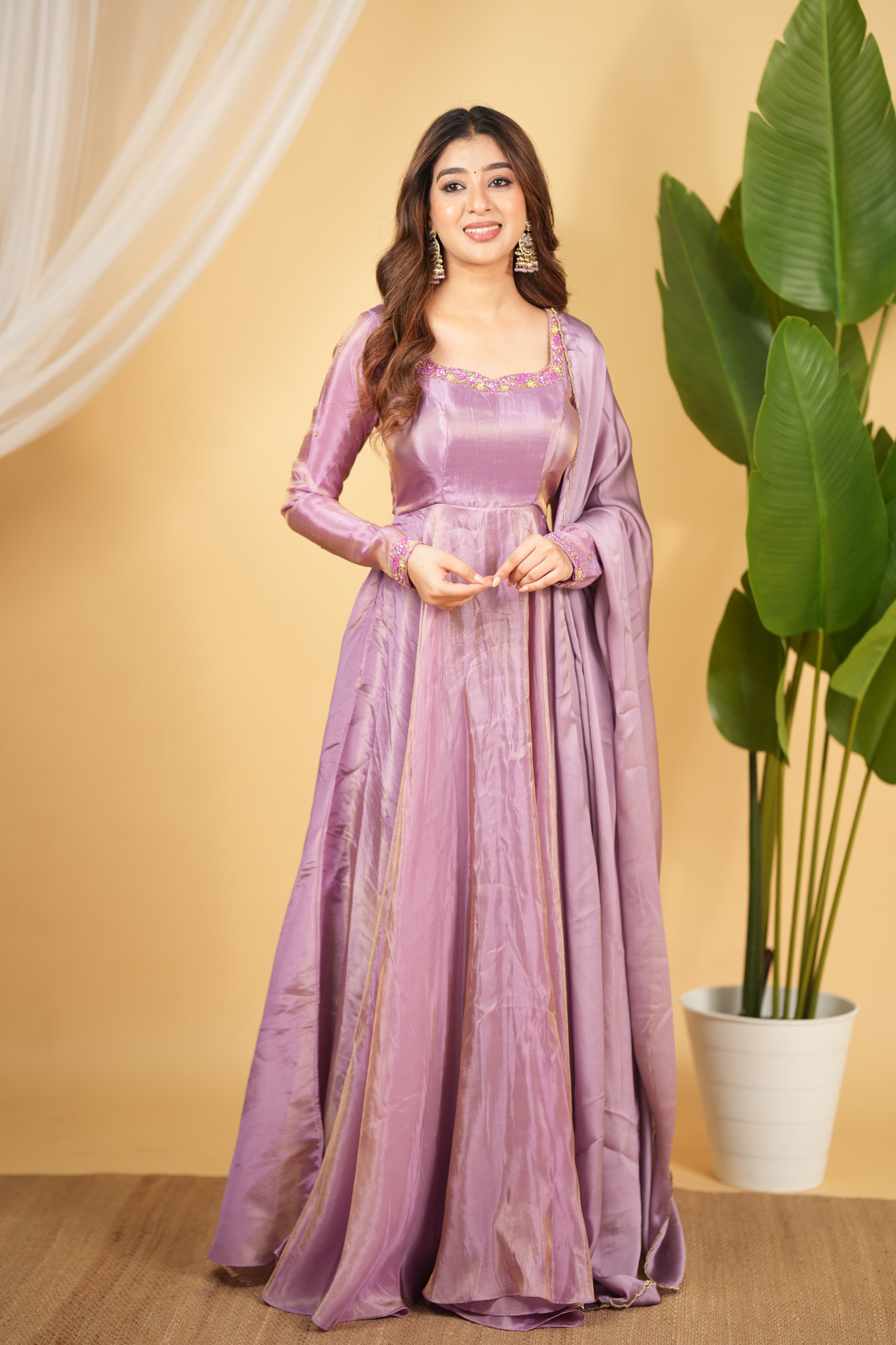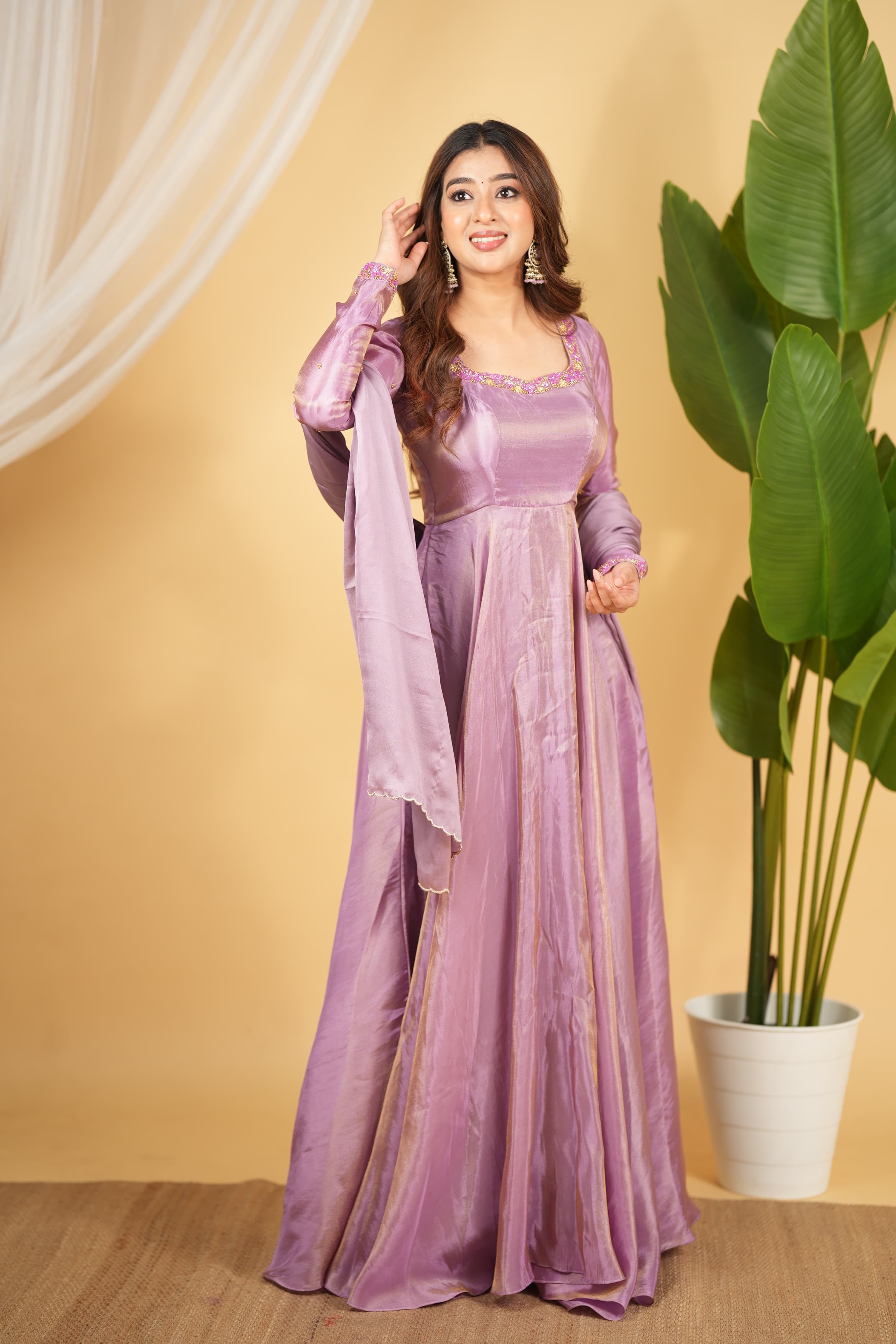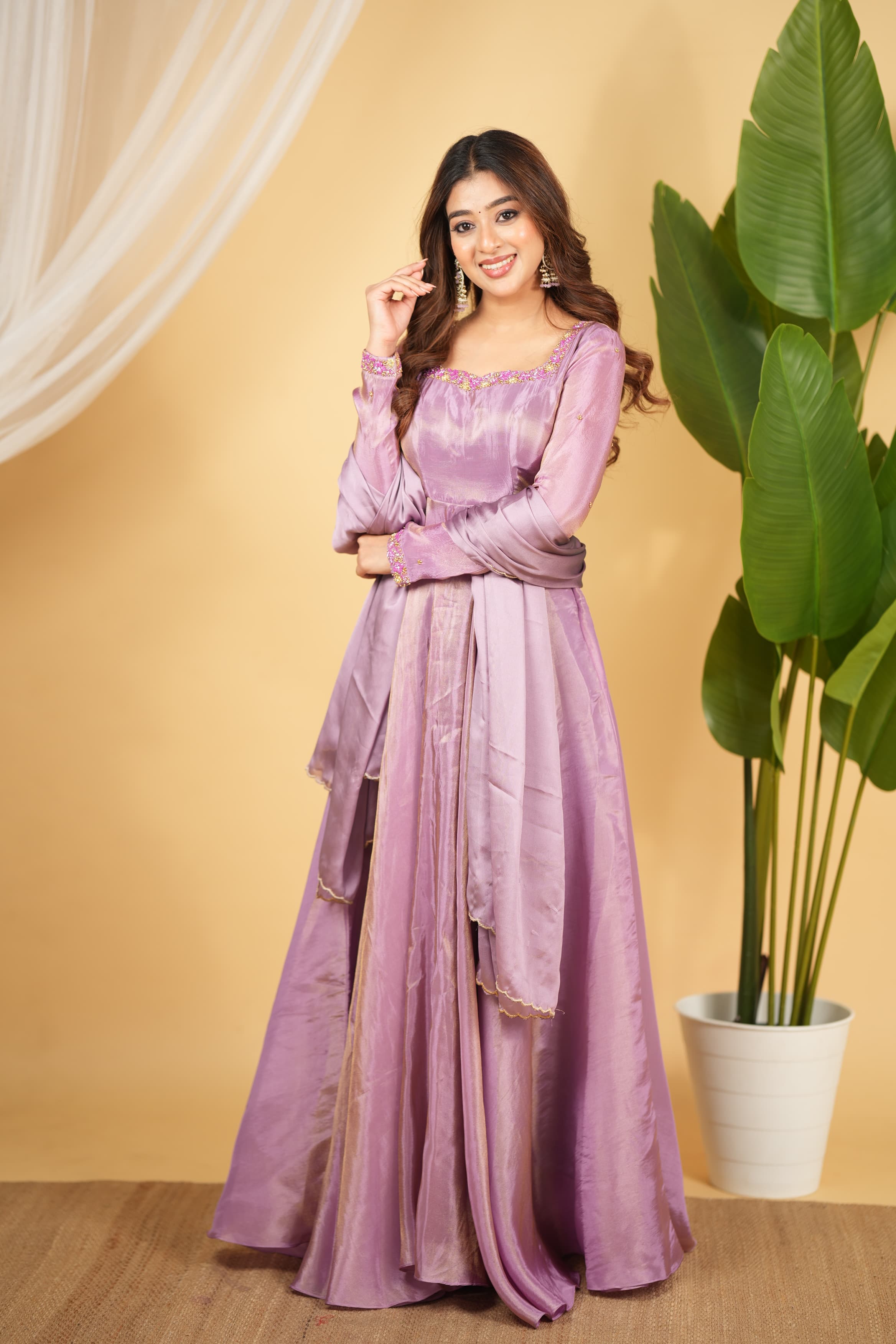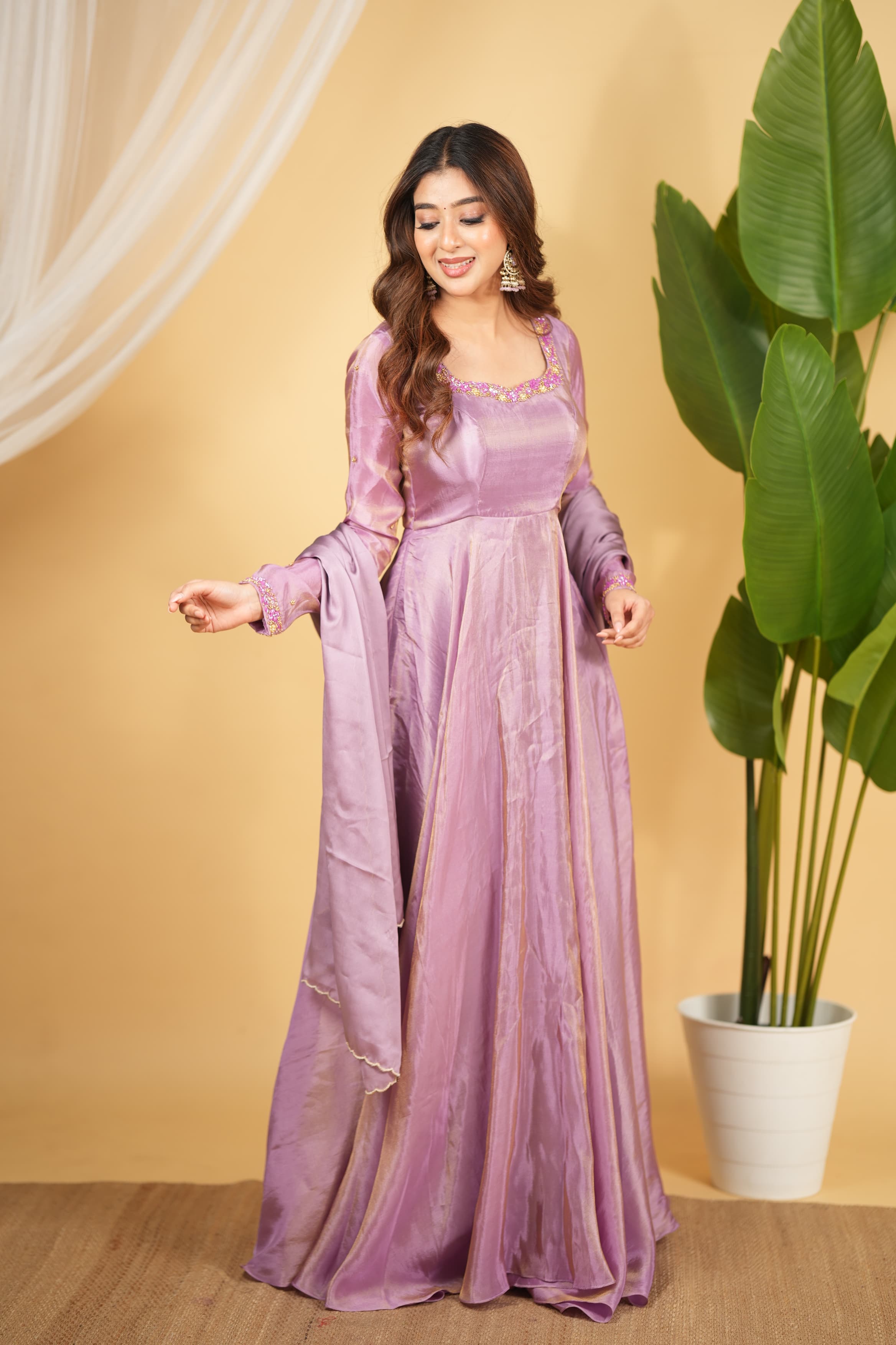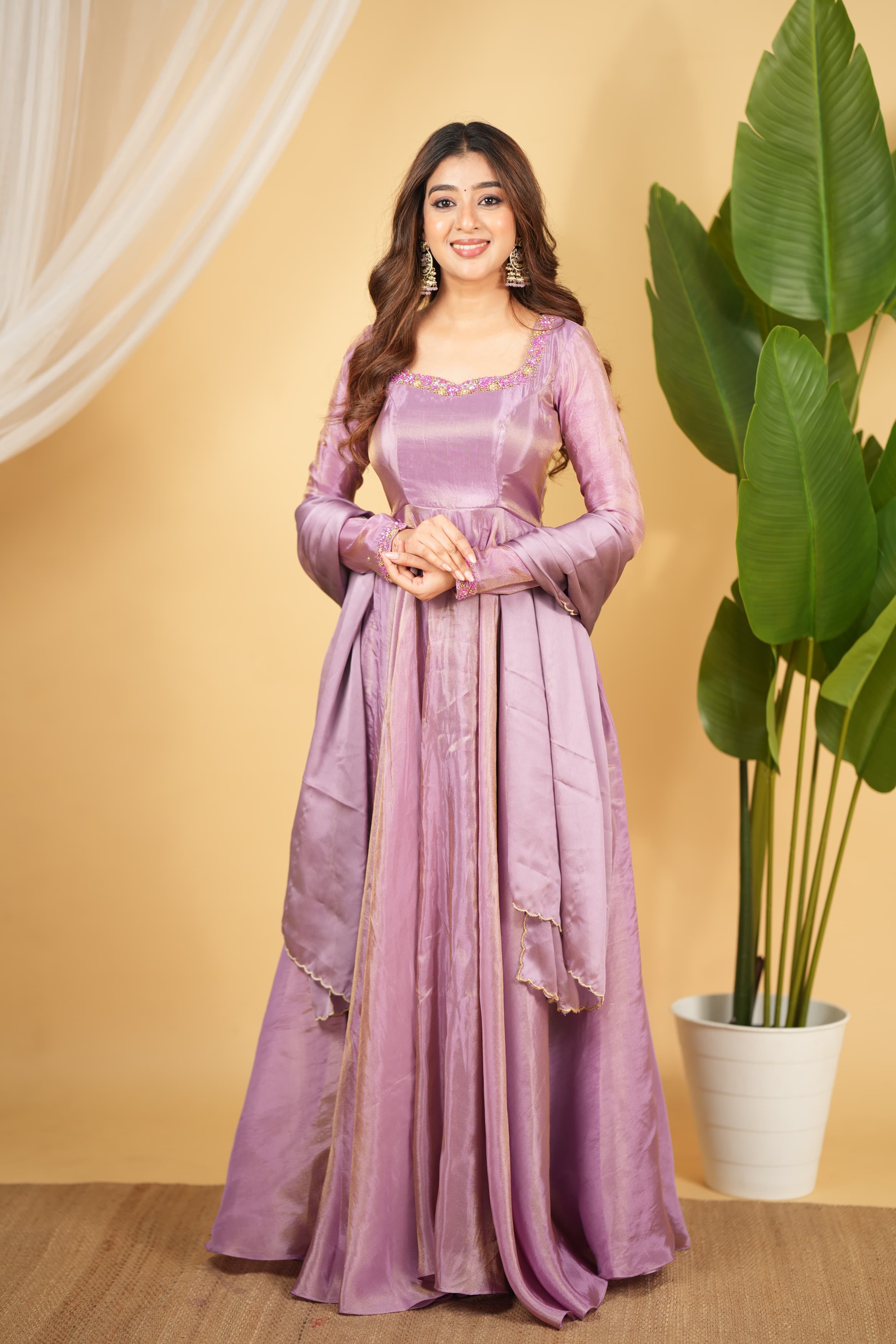 Step into elegance with our exquisite Lillia Collection! Crafted with luxurious zari tissue and adorned with intricate hand embroidery, this dress is a perfect blend of tradition and sophistication.