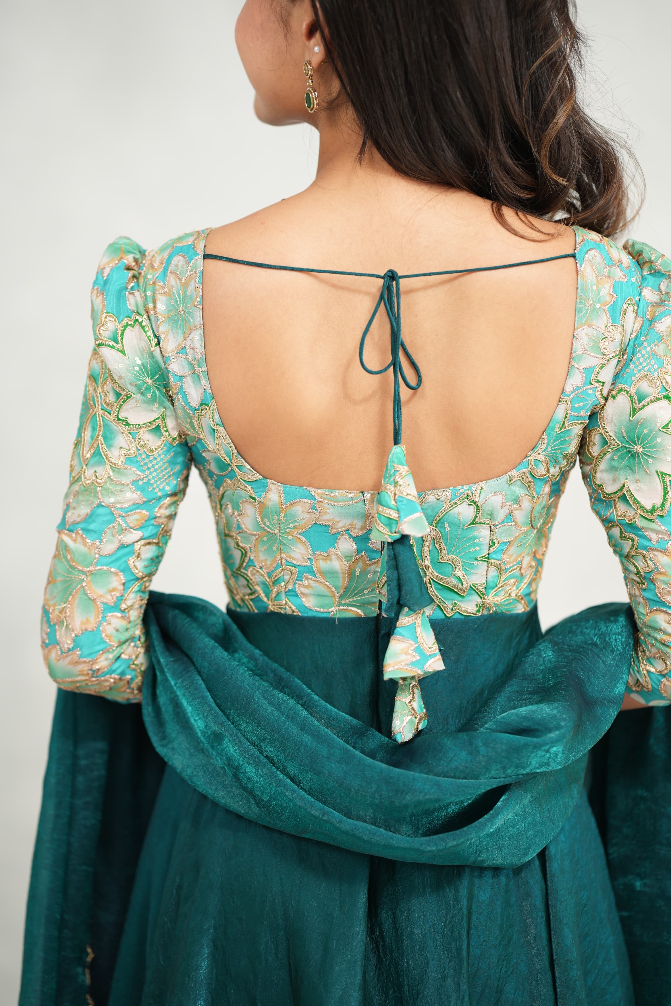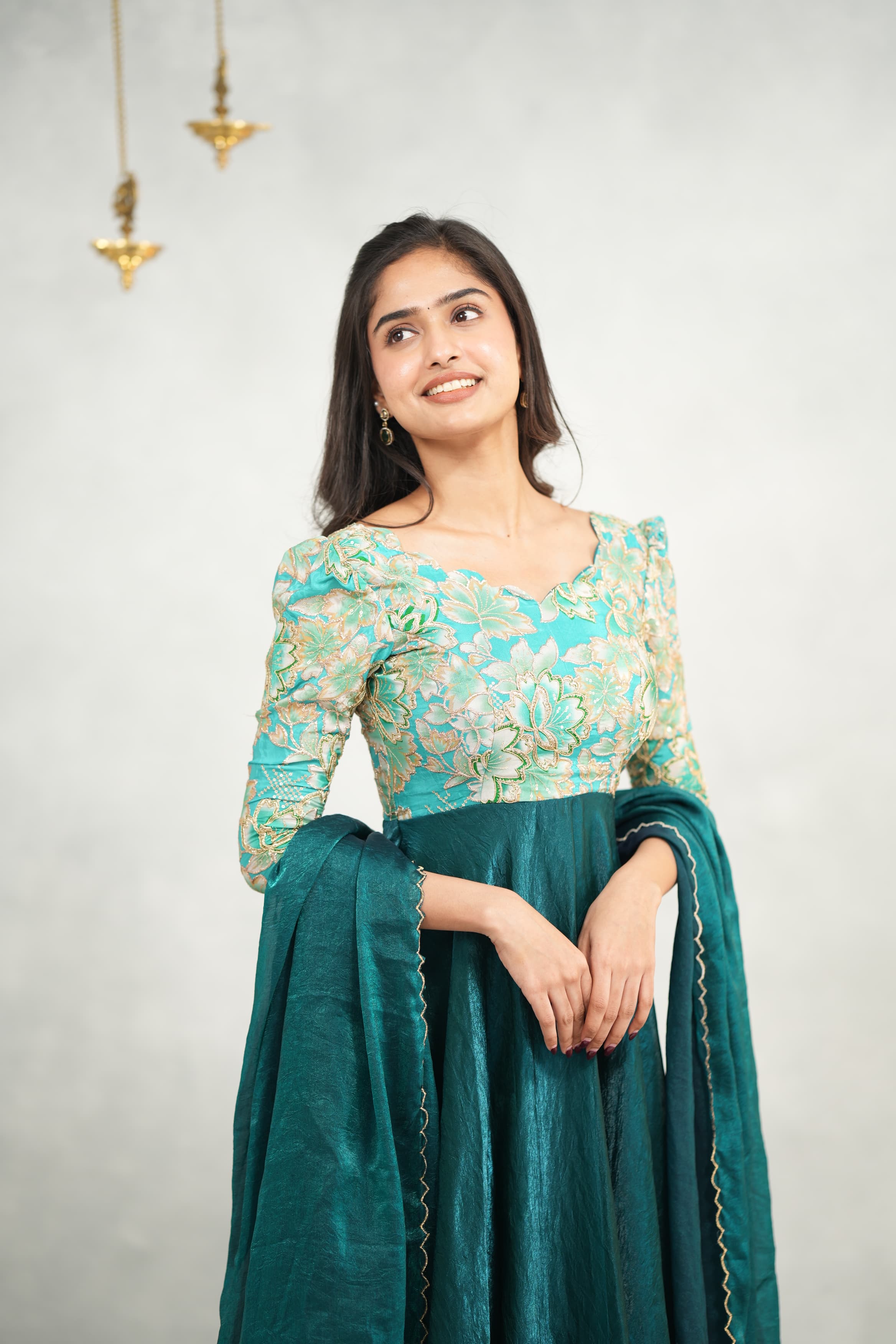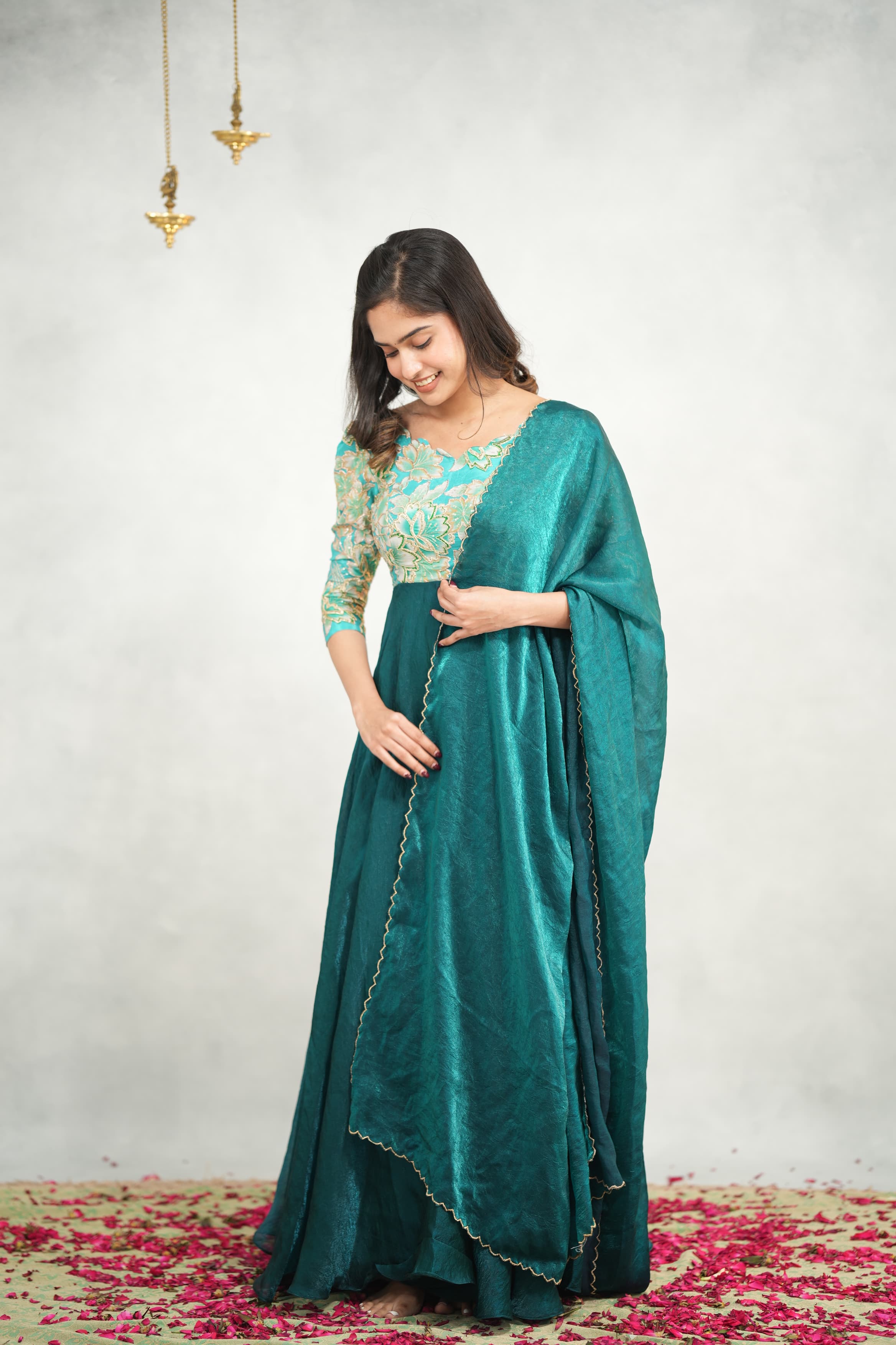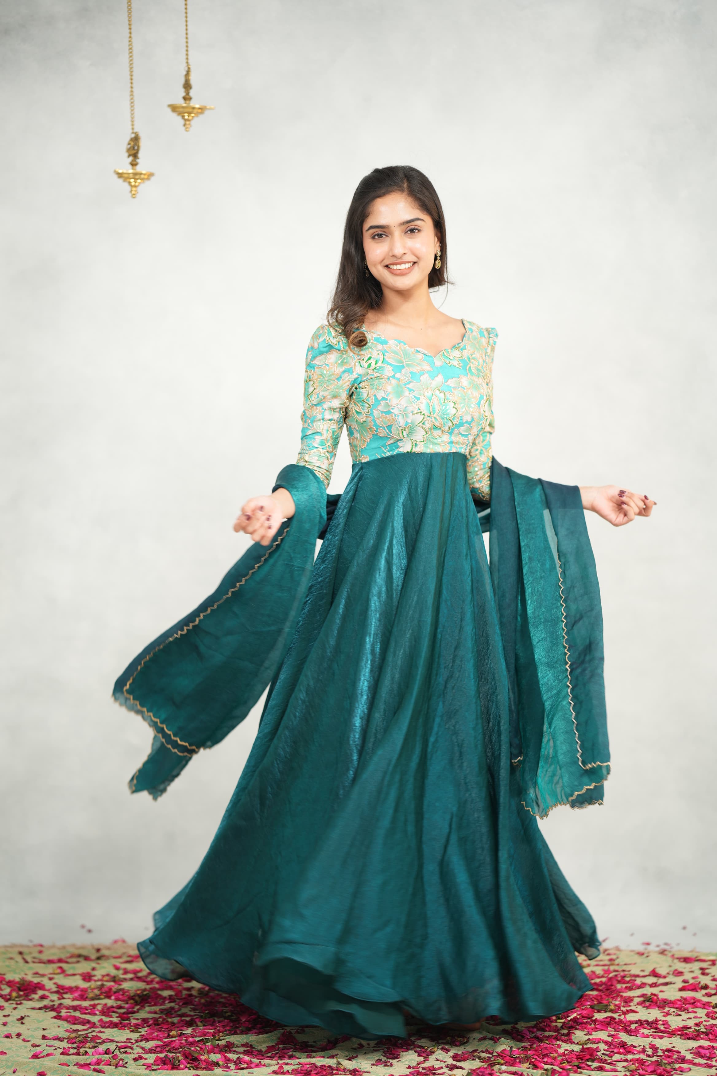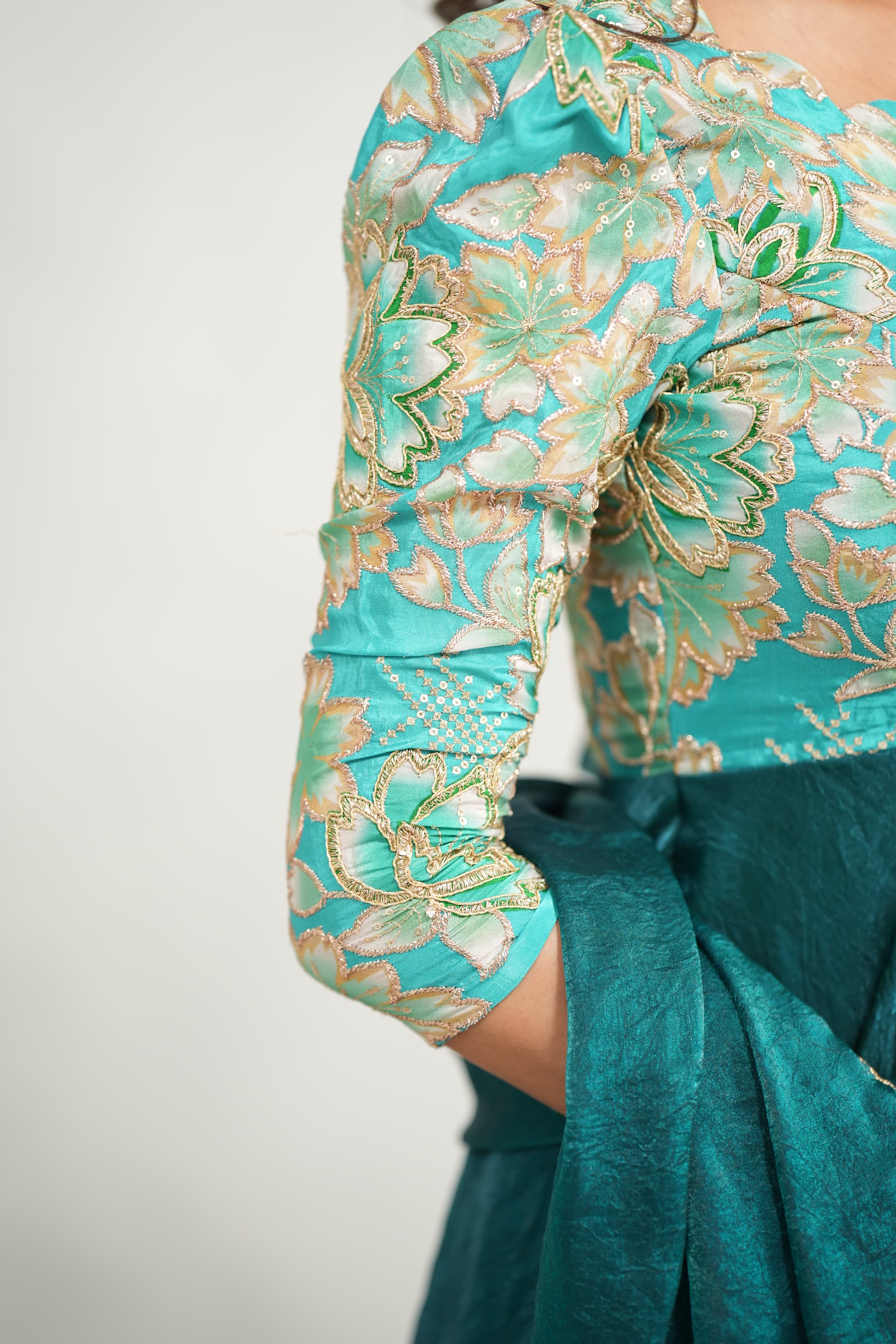 Step into elegance with our Renu Collection, crafted in luxurious sequence and crush tissue fabric. The perfect pick for weddings, receptions, or festive evenings — this dress blends tradition with a modern twist.