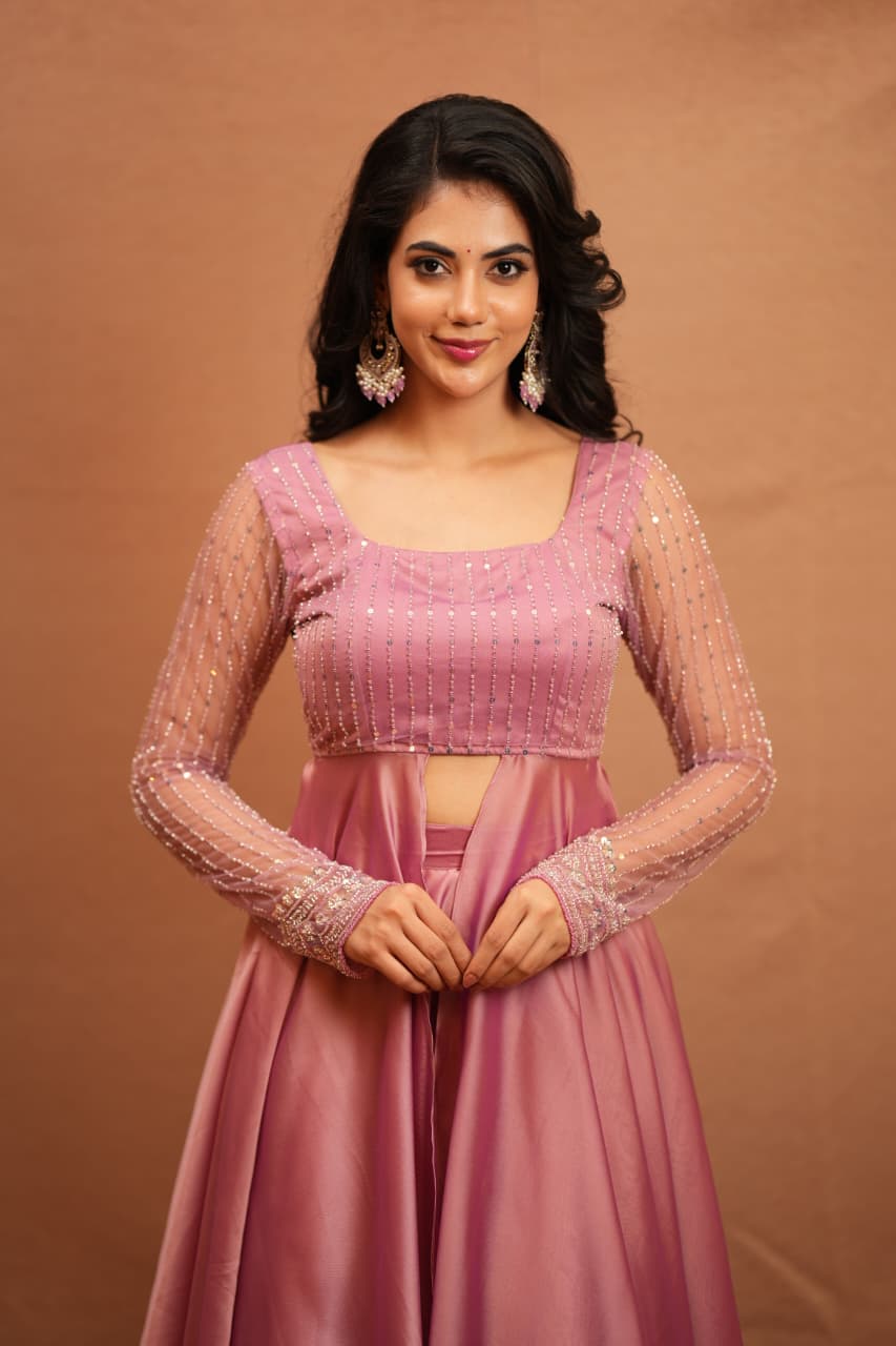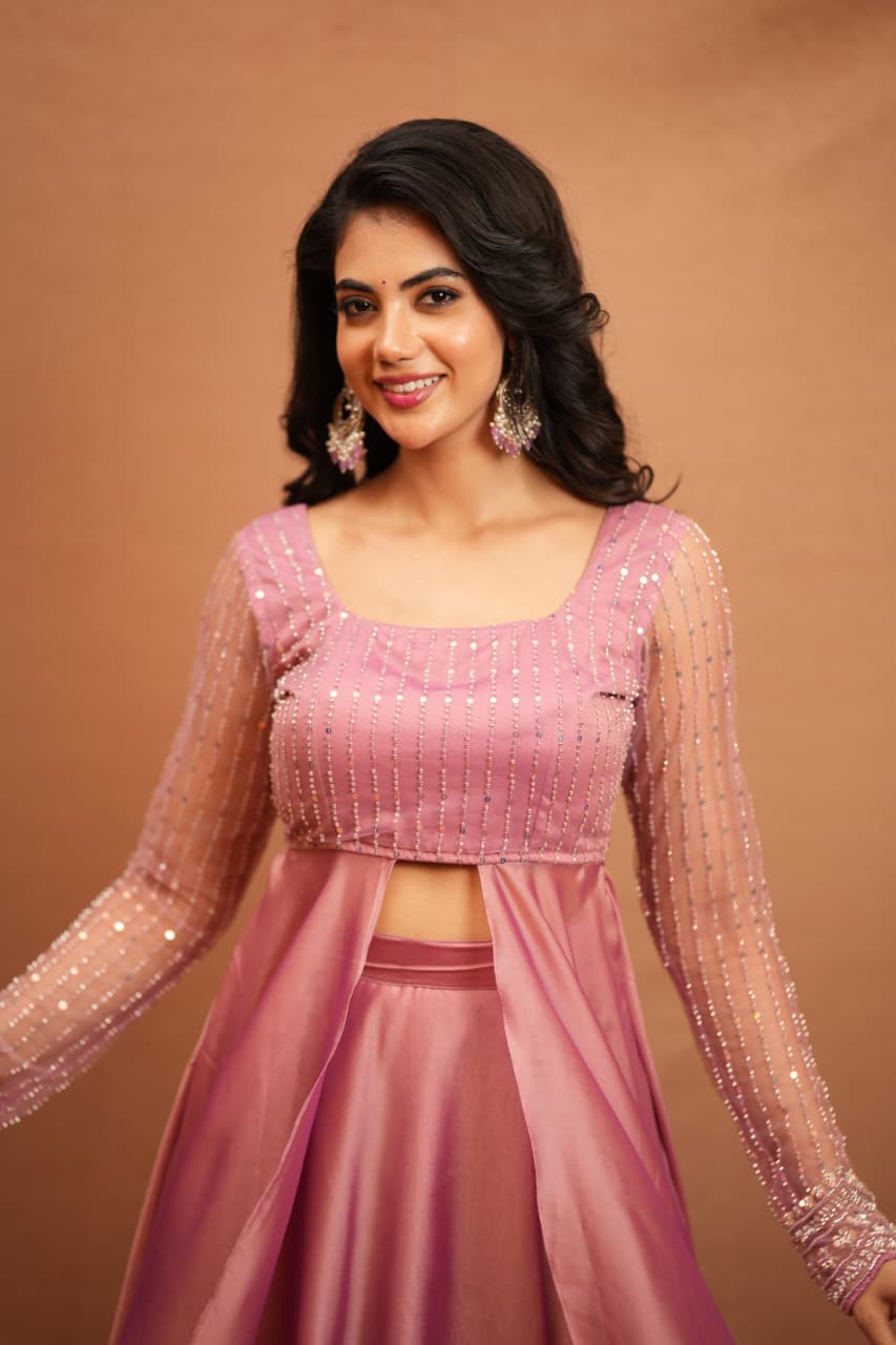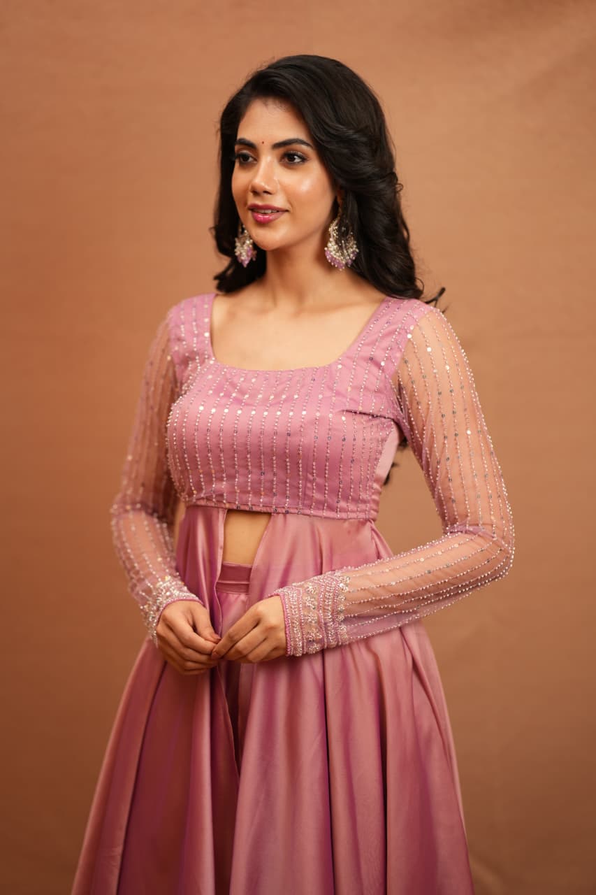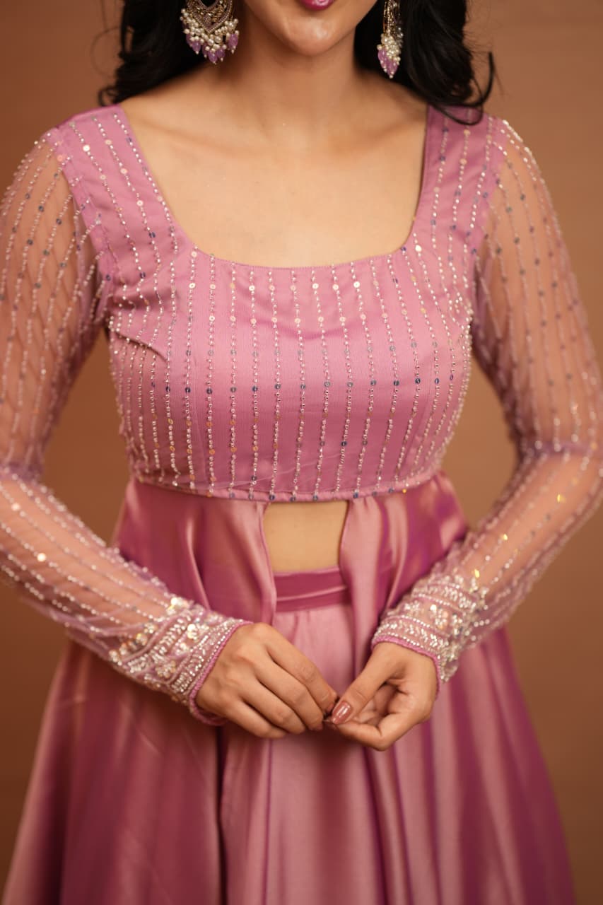 Designer blouse crafted from sequence fabric, beautifully hand-detailed to bring a glamorous festive sparkle. Styled with a chic neckline and long sleeves, perfect for adding modern elegance.