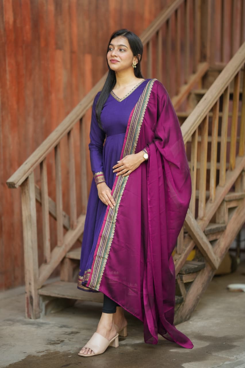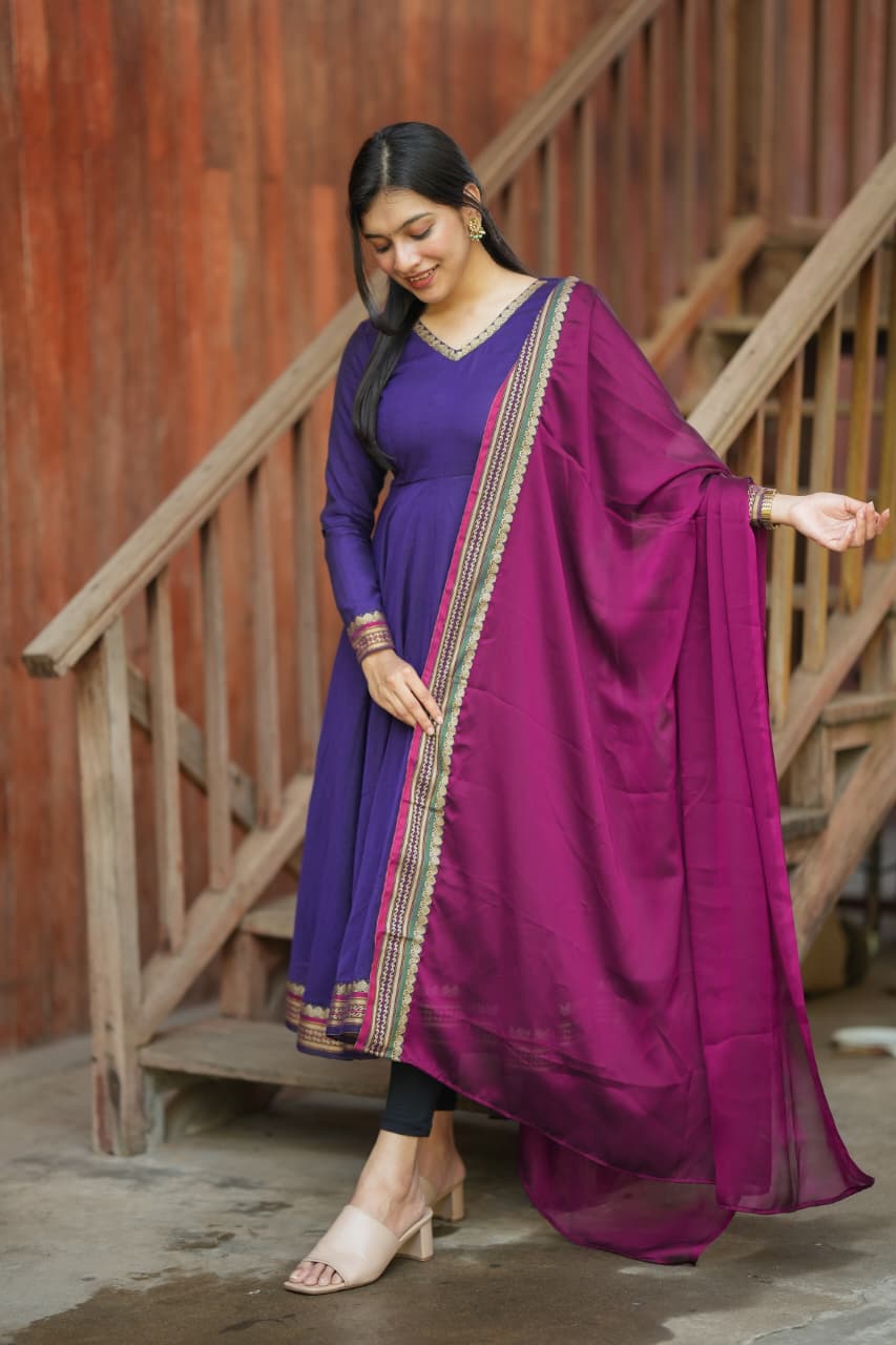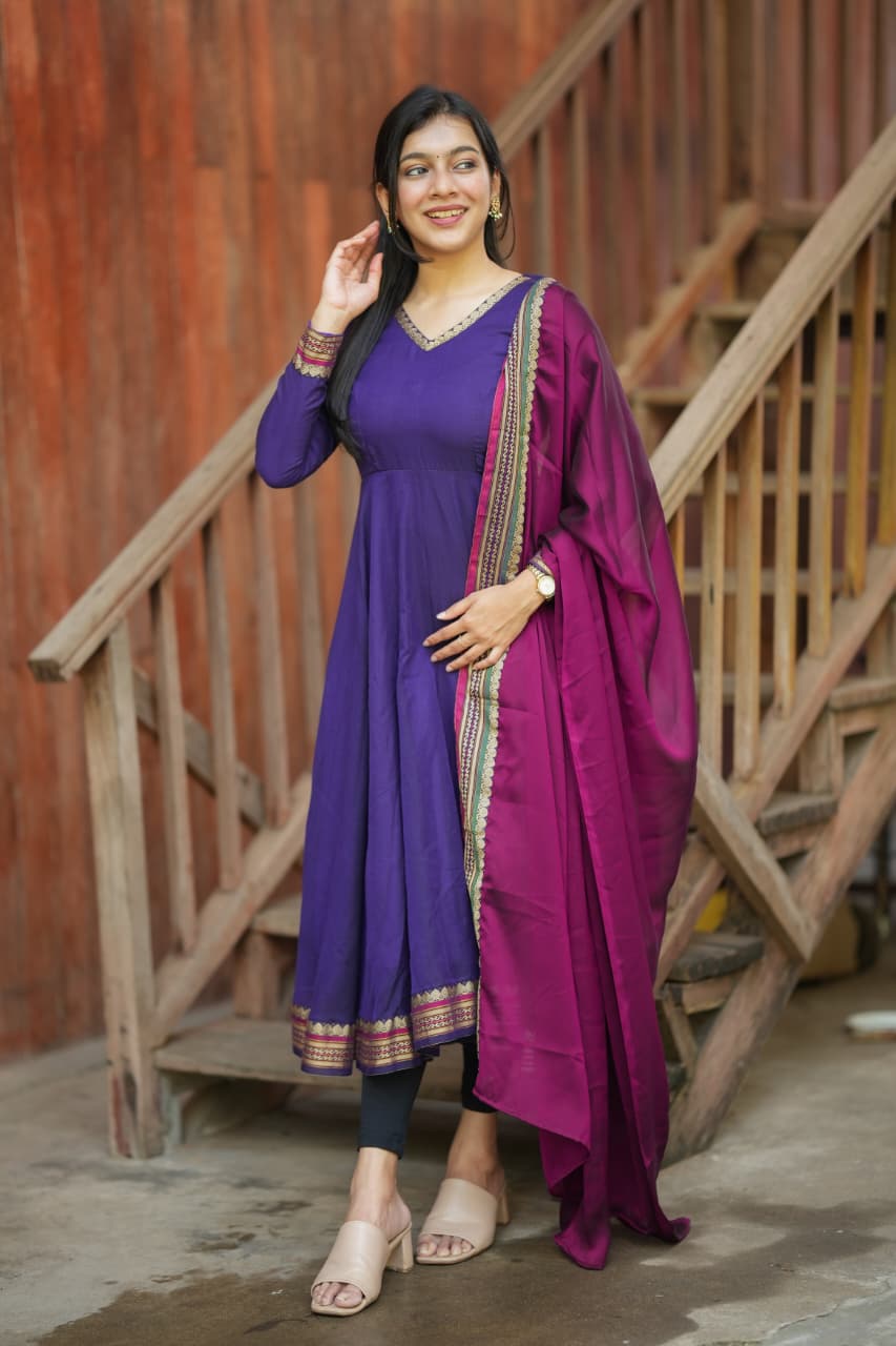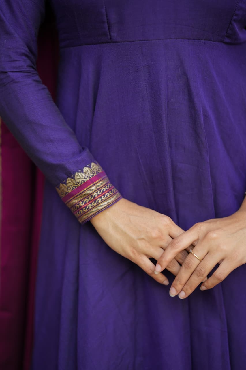 The Lavanya Series is a beautiful blend of simplicity and elegance, crafted from premium handloom fabric that reflects timeless ethnic charm. The rich purple tone paired with classic detailing creates a graceful silhouette, making it a perfect choice for both everyday elegance and festive wear.