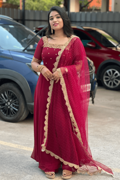- Fabric: Georgette with Hand Embroidery design